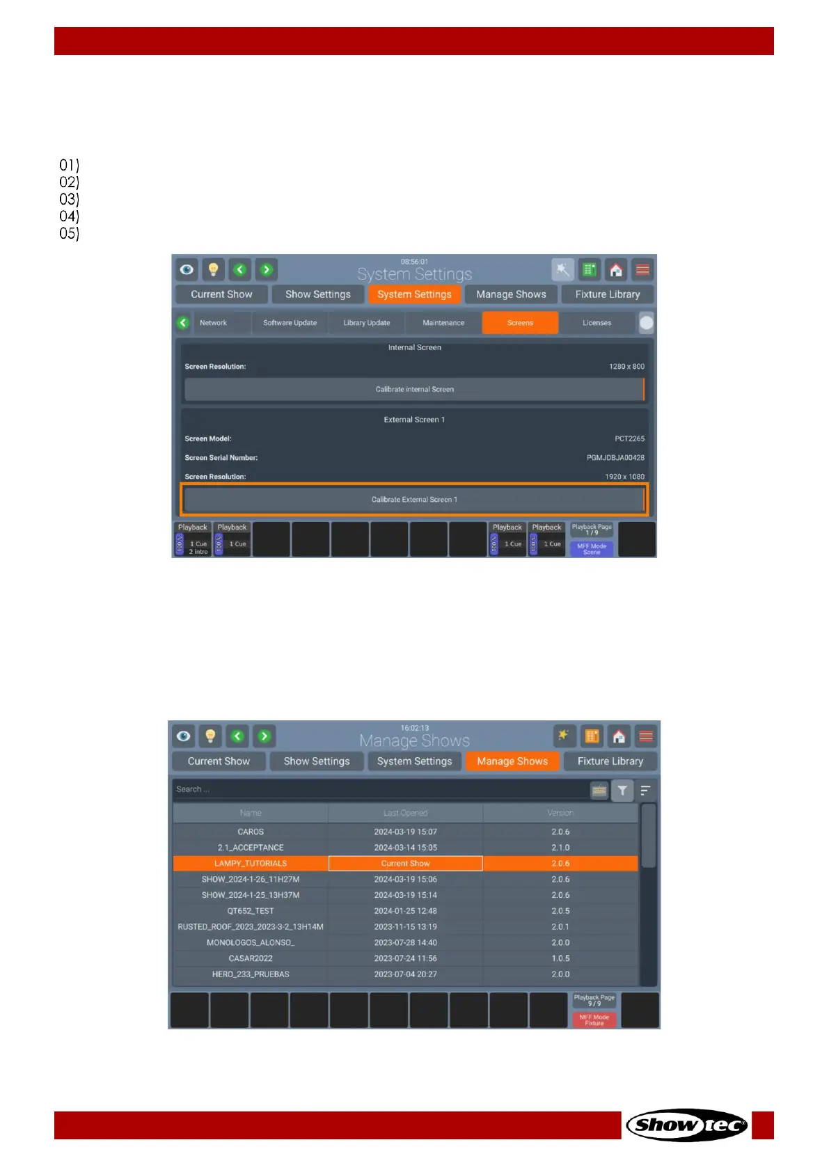 The Manage Shows Tab may be used to Import, Export or Delete Shows. Additionally, it may be used as a
