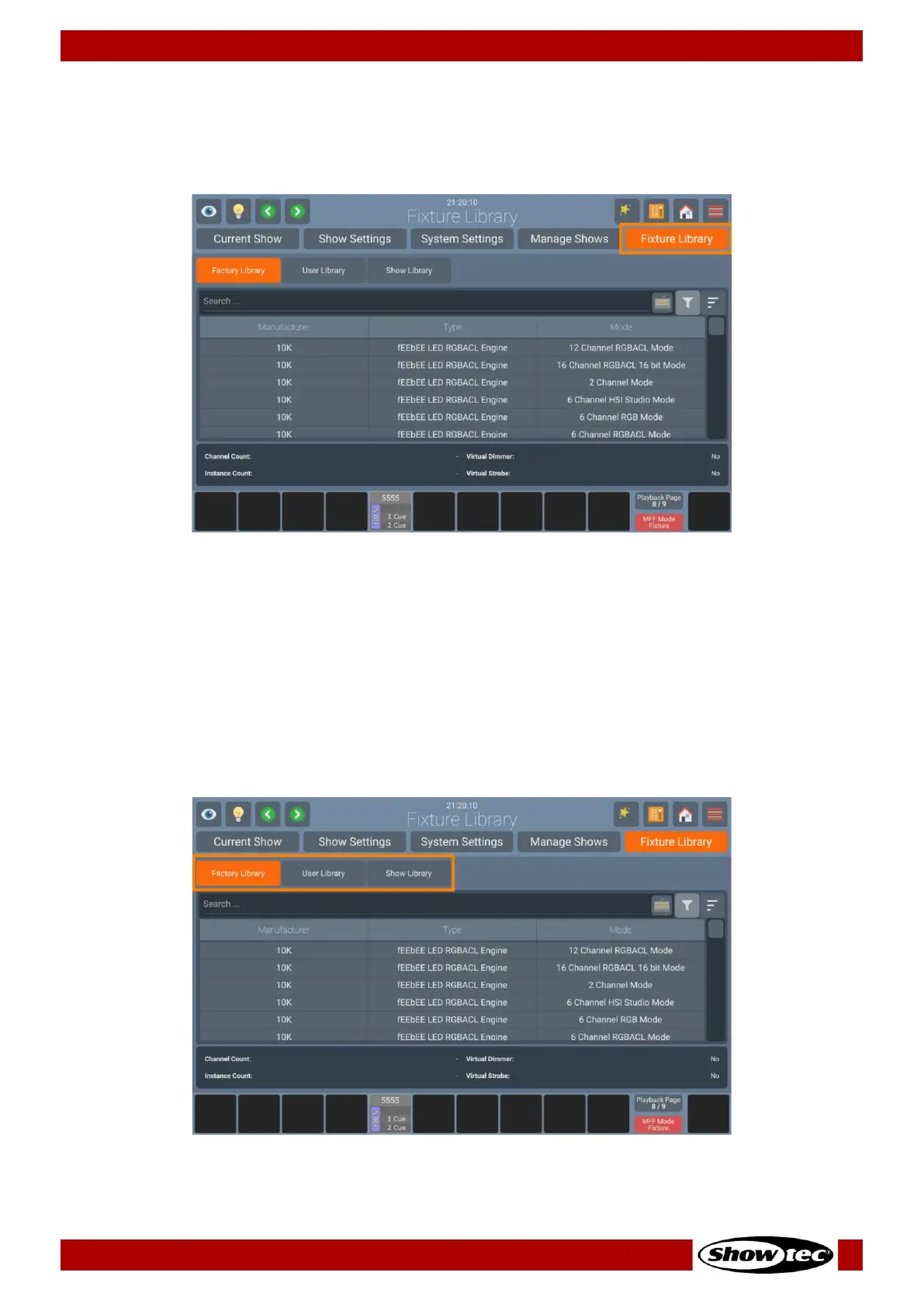console. The Show Library is unique for each show and contains the fixture types used in the show file.