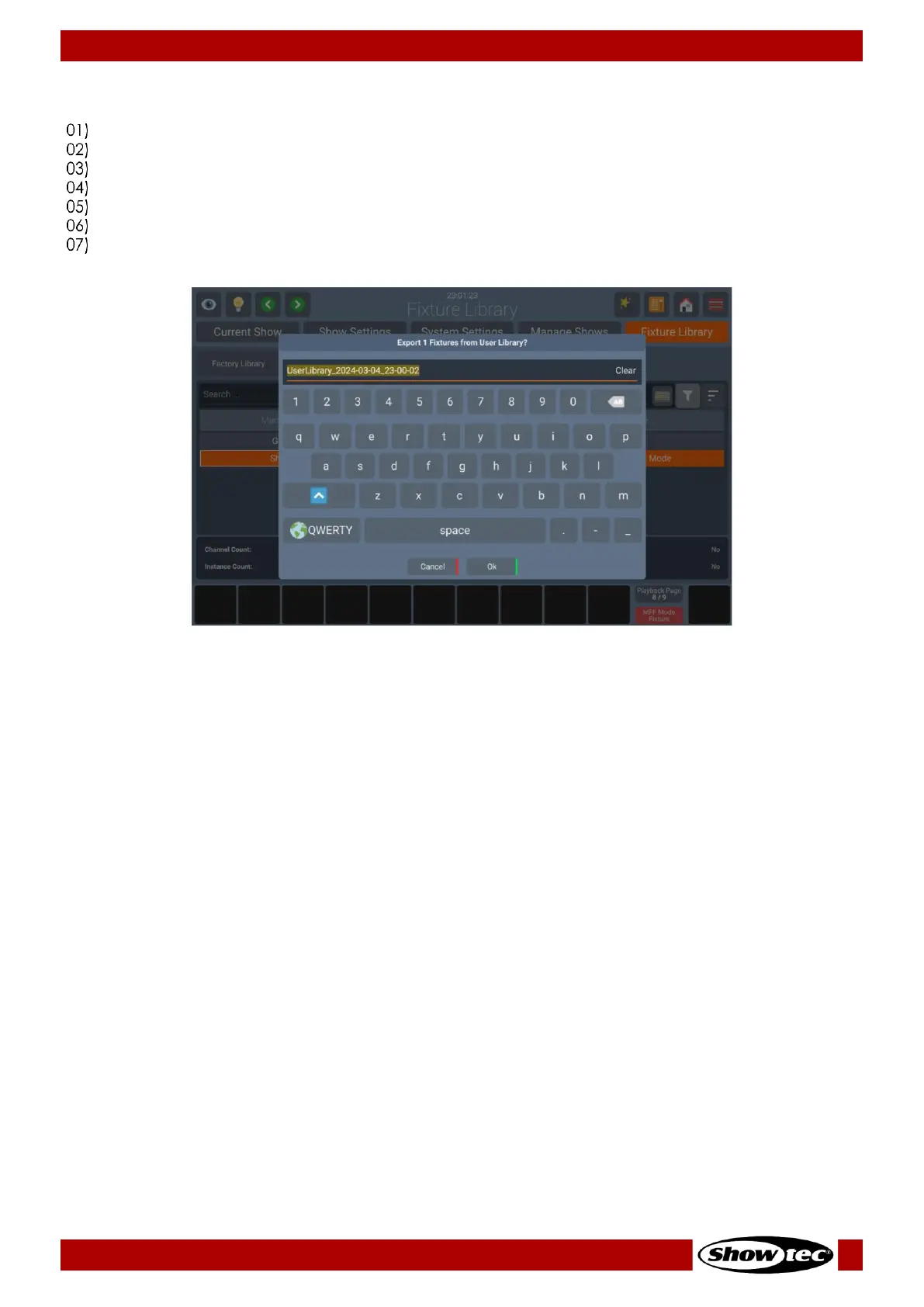 To export a fixture library to USB, head to the Fixture Library Tab within the Setup Menu.