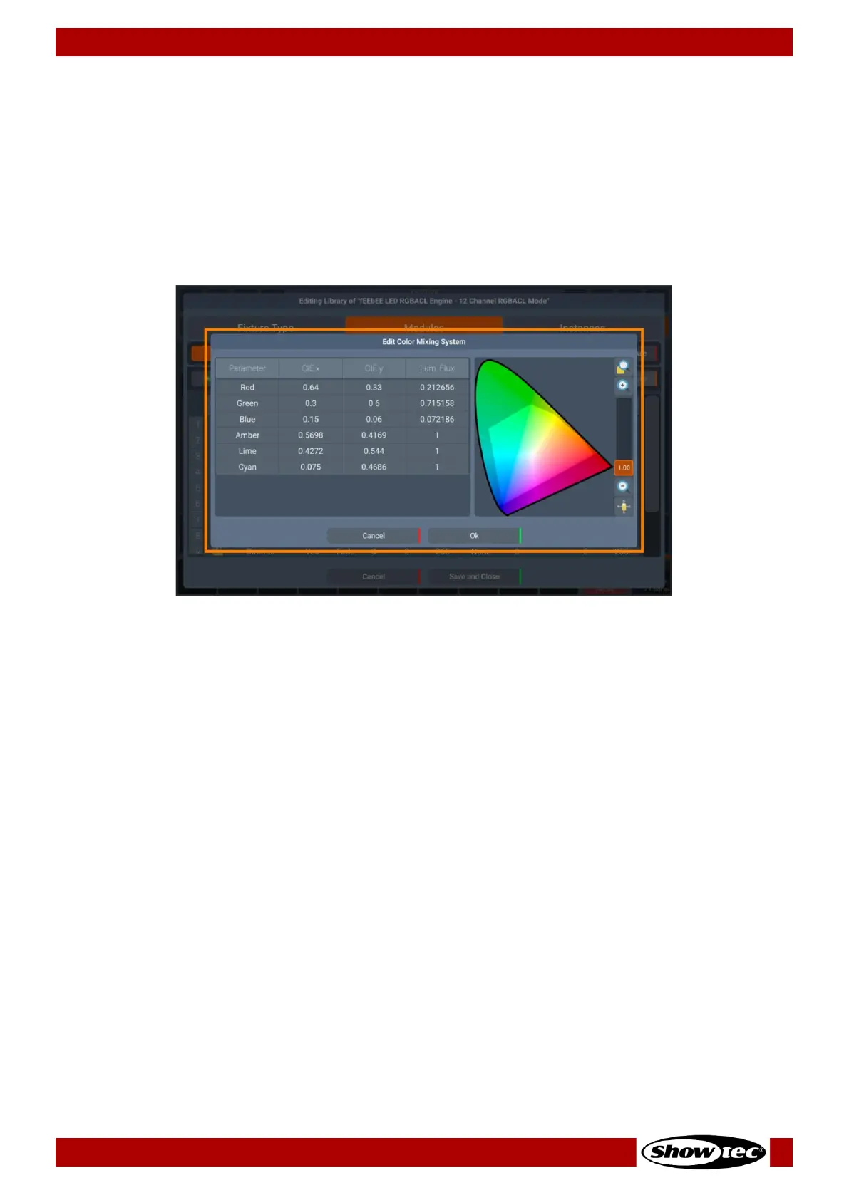 Fig. 87: Edit Fixture Library – Modules Tab – Edit Color Mixing System