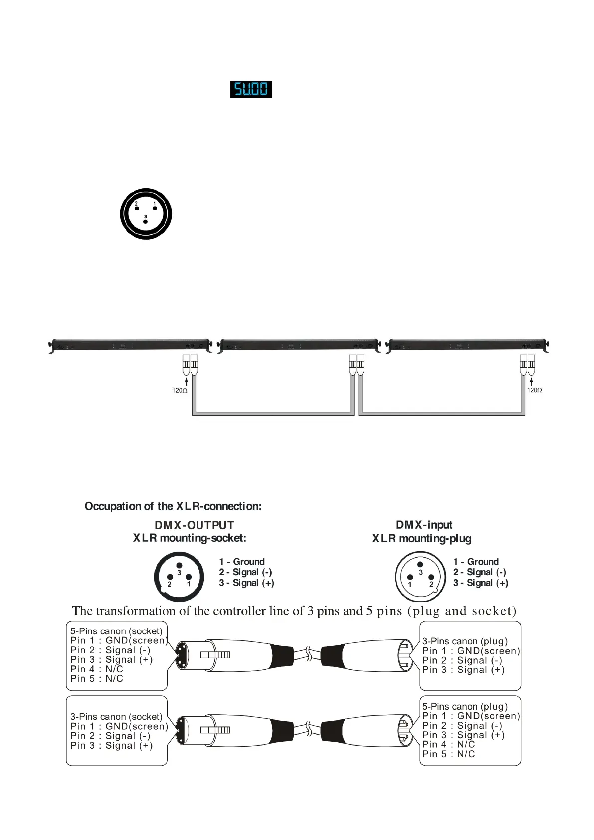 3. Use a 3-p XLR cable to connect the LED Light Bar and other devices.