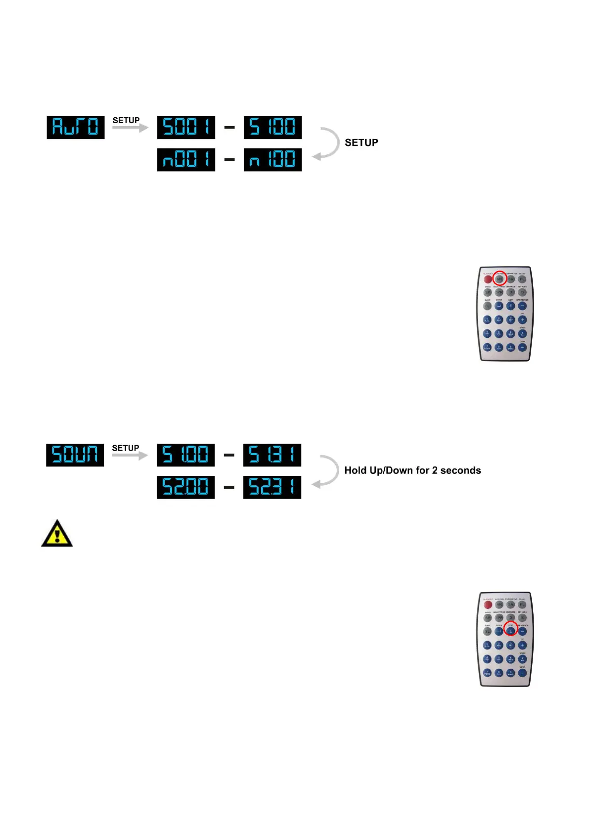 2) Press the AUTO RUN button on the remote twice, until the display shows SXXX.