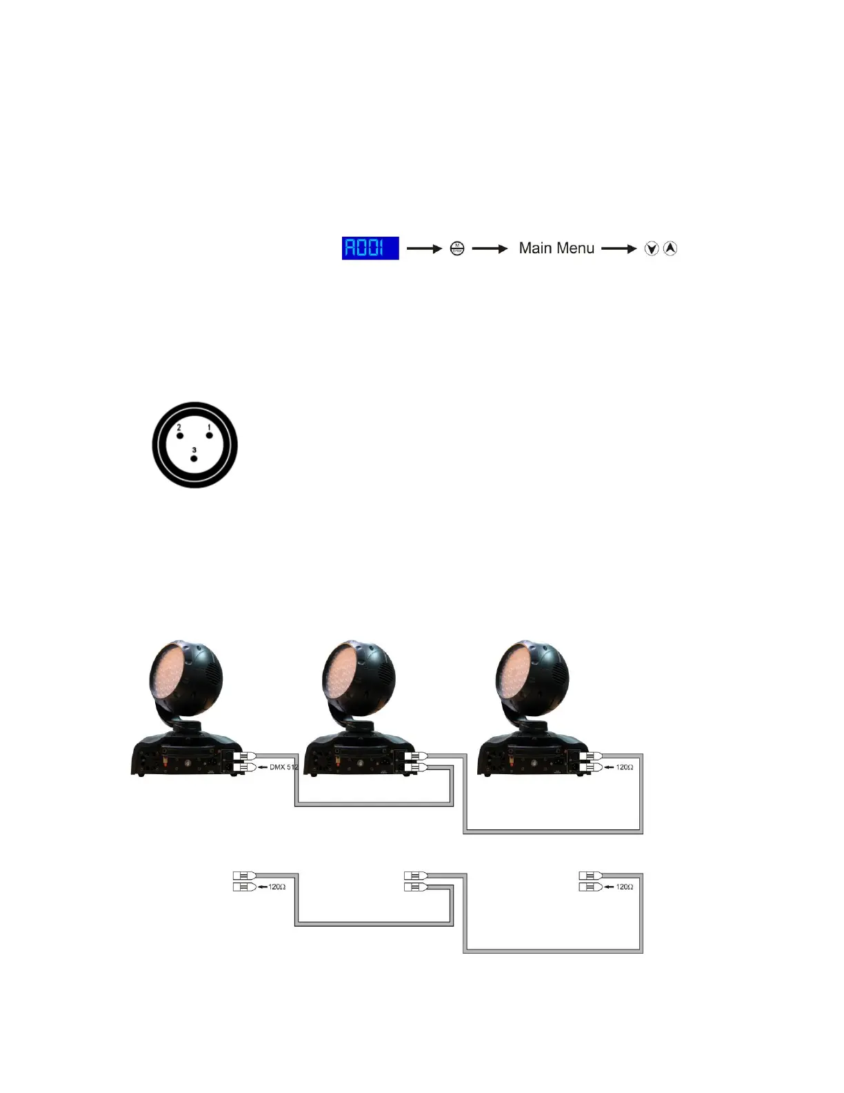 3. Link the units as shown in (figure 3), Connect a DMX signal cable from the first unit's DMX "out" socket to