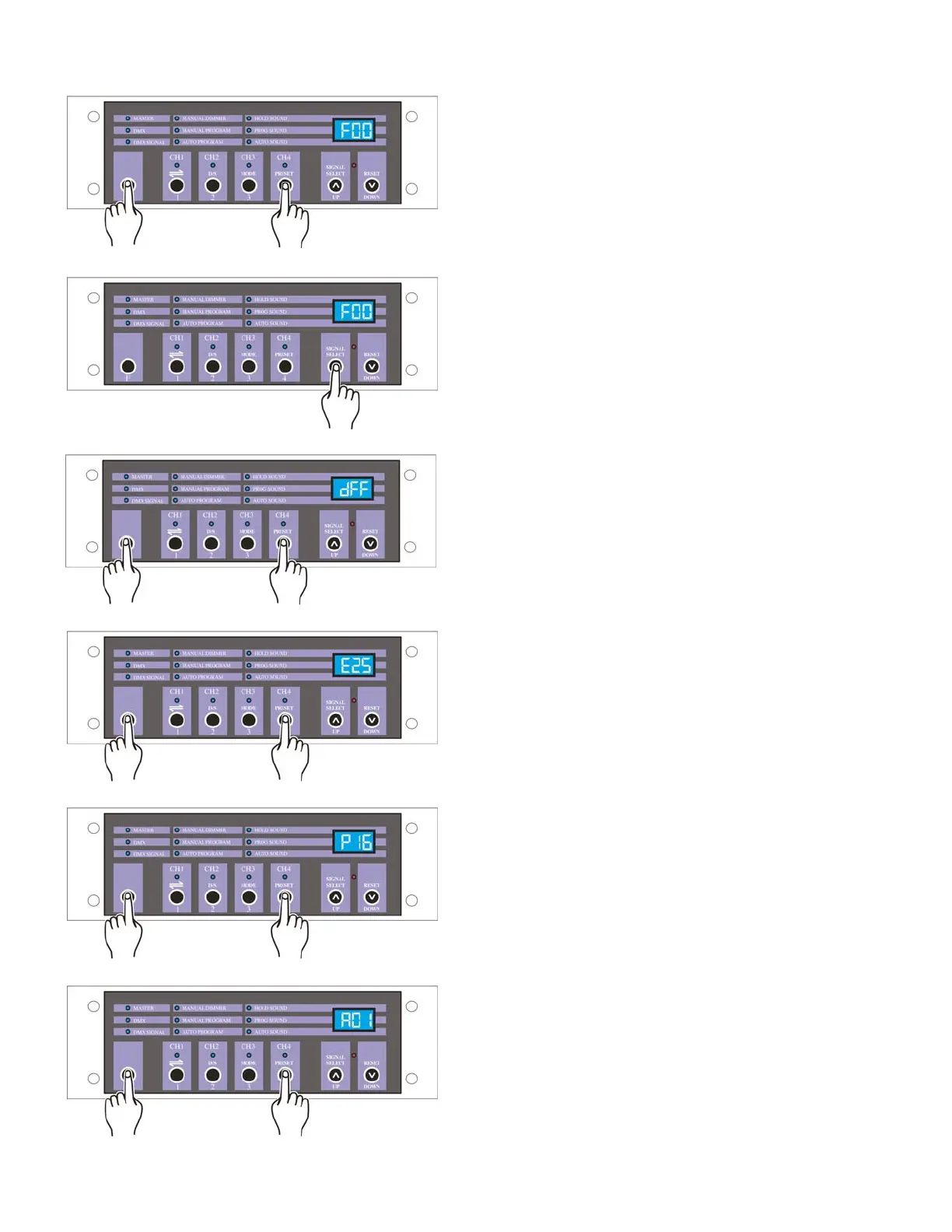 Keep pressing F button, tap Preset button several times