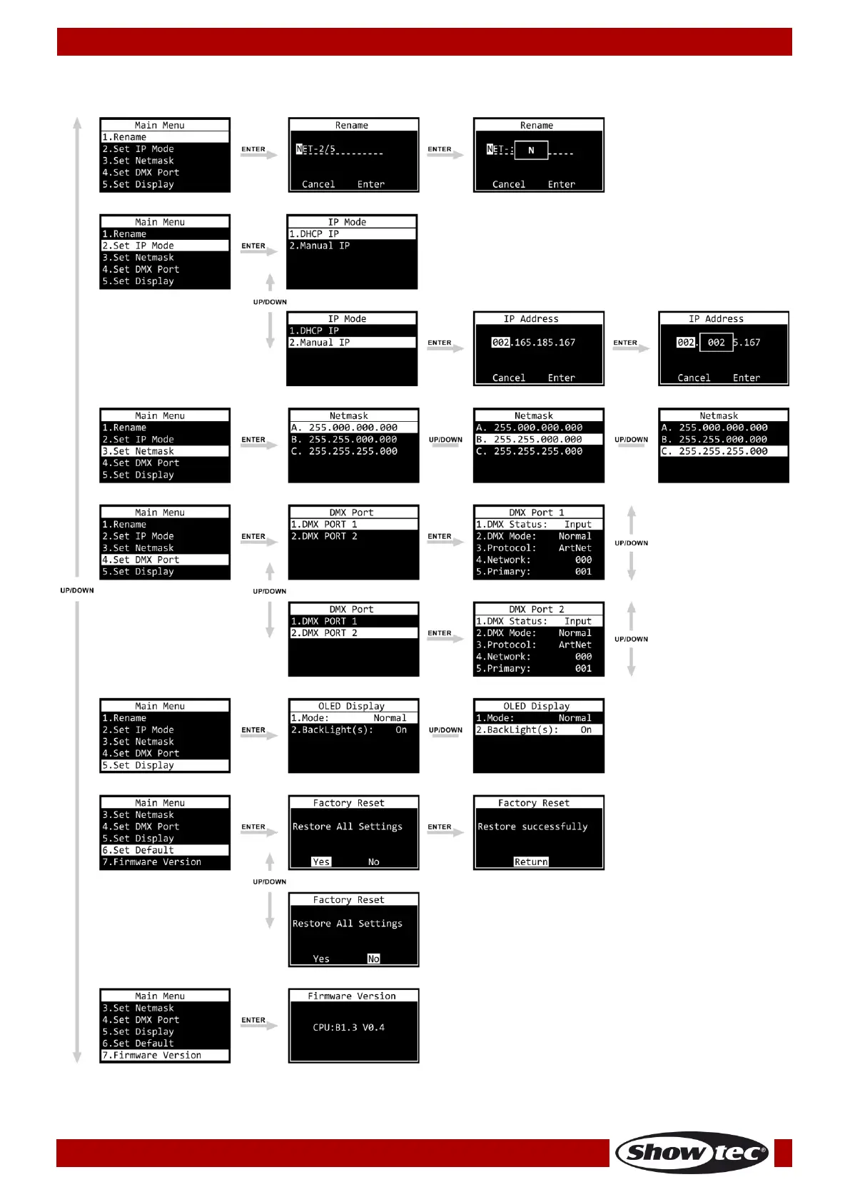 SHOWTEC Net-2/5 Pocket - Main Menu Overview