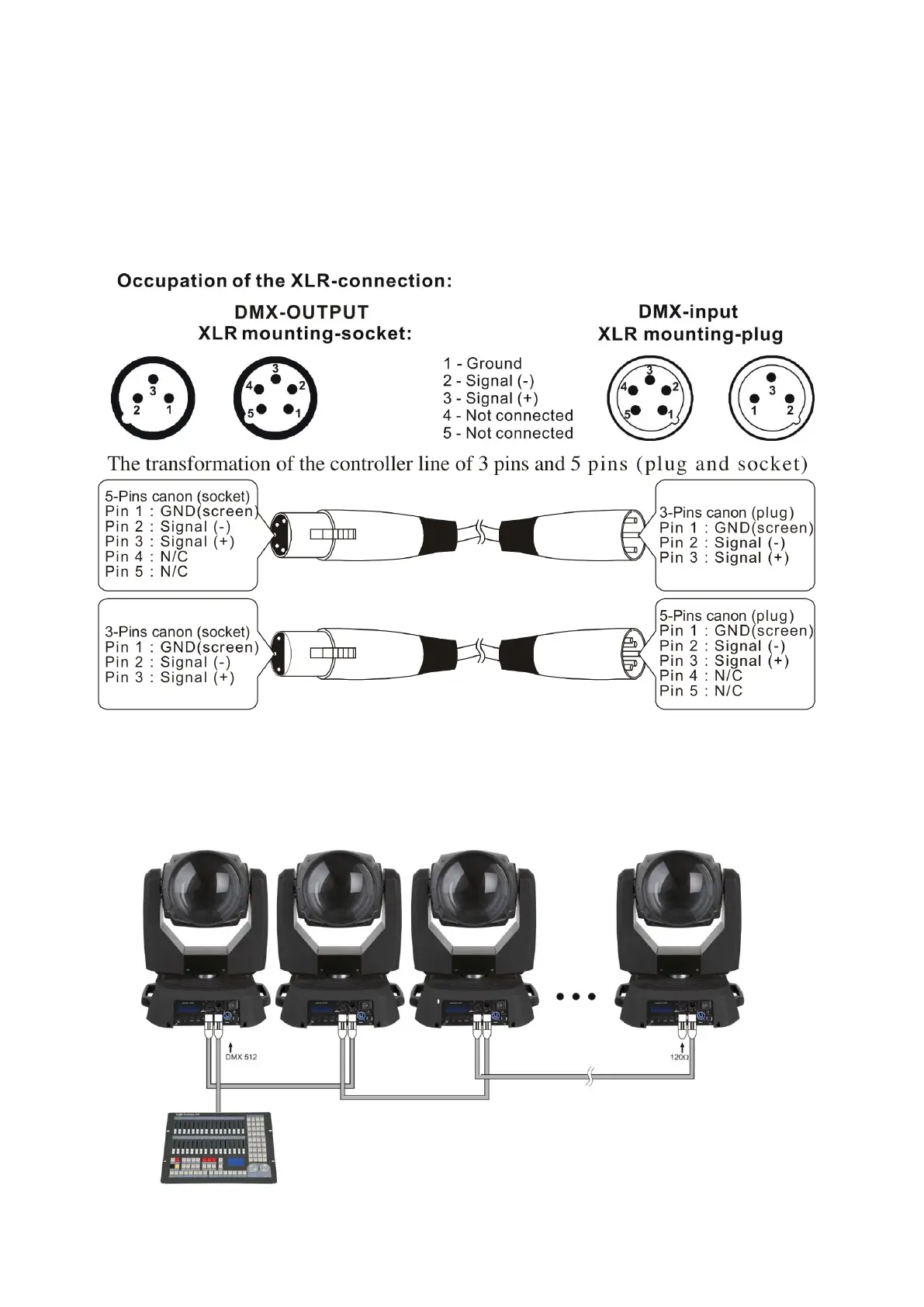 4. Link the units as shown in (figure 4), Connect a DMX signal cable from the first unit's DMX "out" socket to