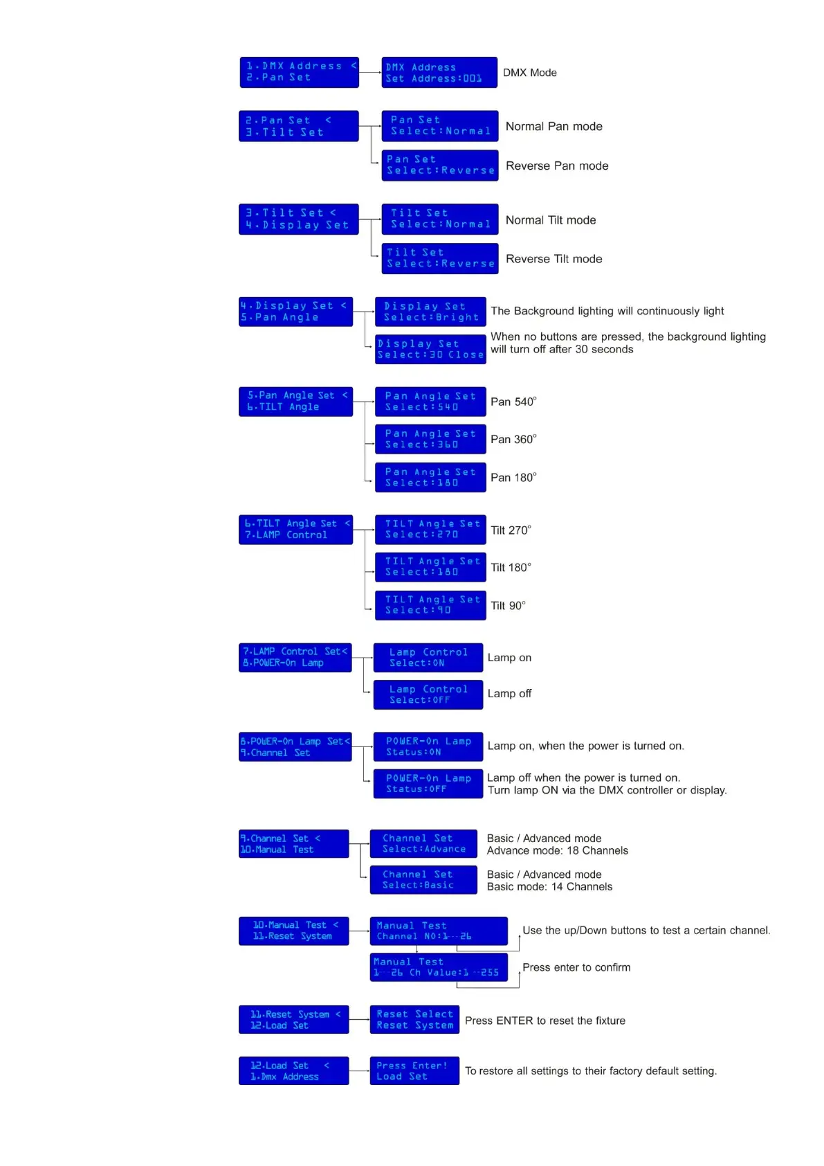 SHOWTEC Phantom 300 Beam - Menu Overview