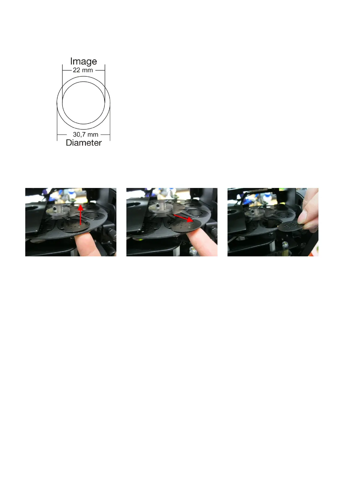 2. Make sure that the gobo you want to insert has the same size. For the right size, see below.