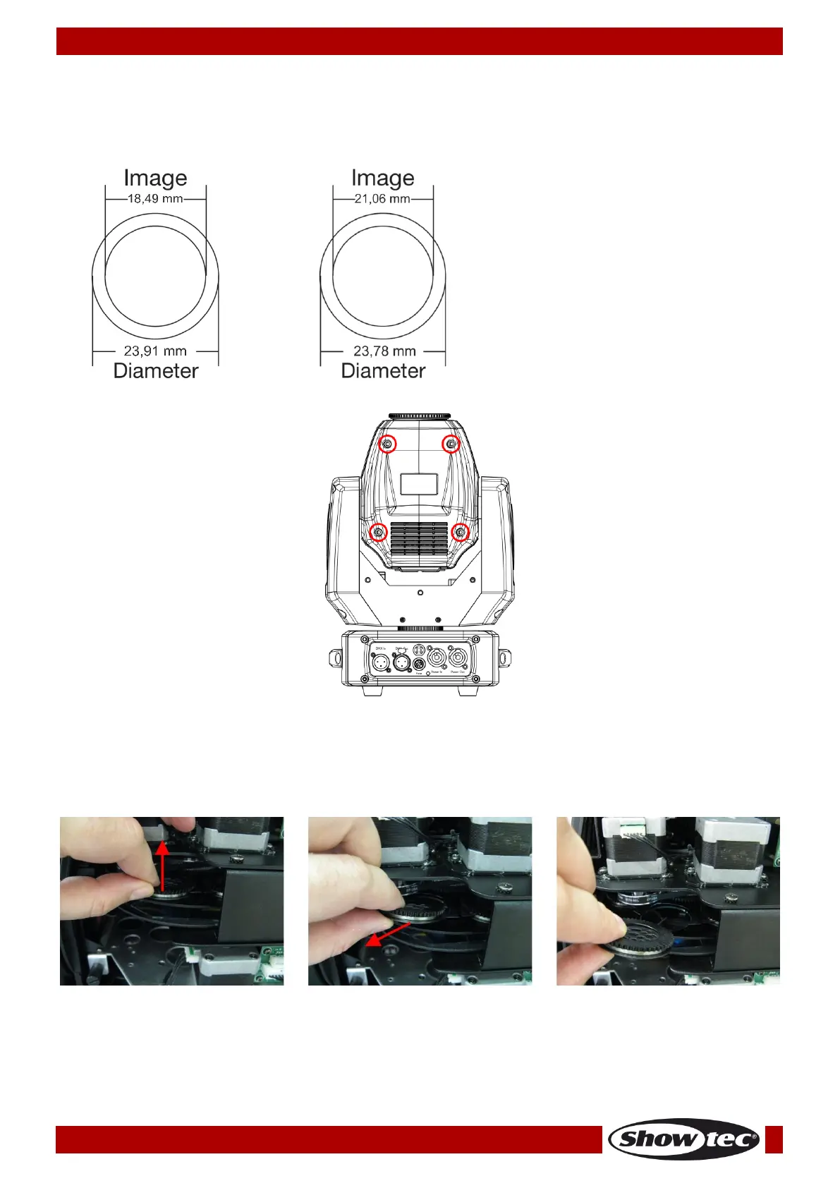 05) Turn the gobo wheel, with the gobo you want to remove, to the upside.