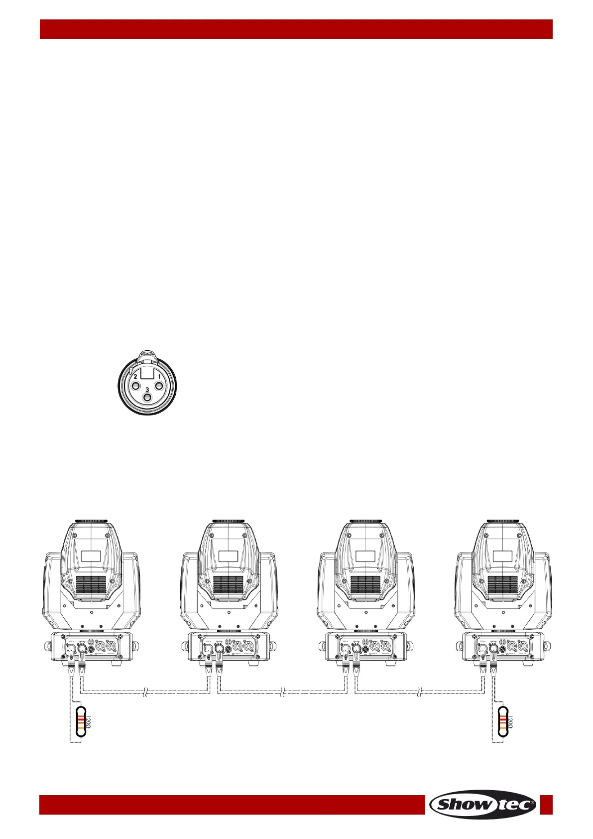 socket, using a DMX-signal cable. Repeat this process to link the second, third, and fourth units.