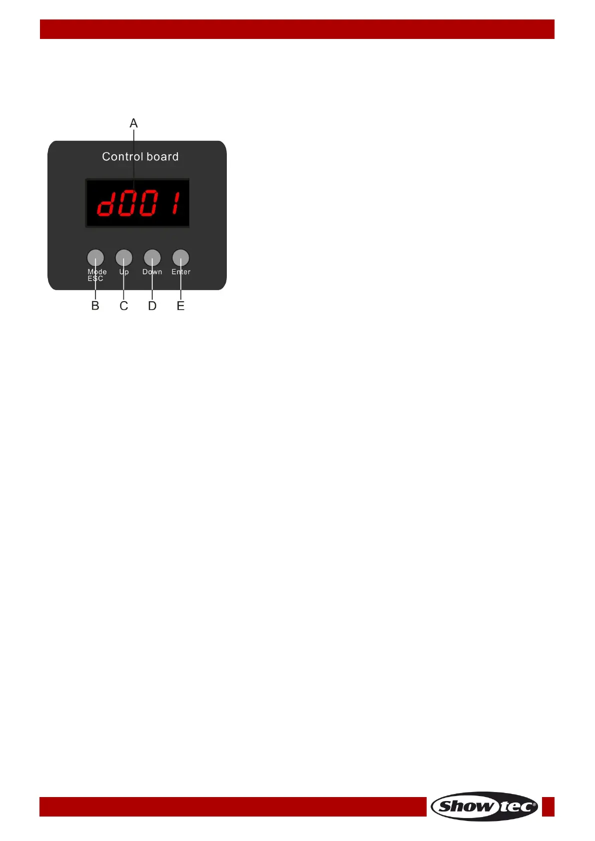 If there is no data received at the DMX-input, the “LED “ on the control panel will not flash.