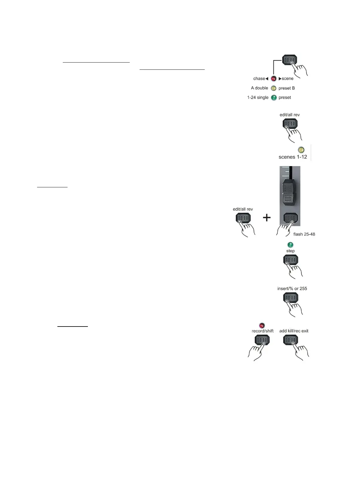 1. Record the scene or chase you wish to insert (now your scene is stored in the edit buffer). As described