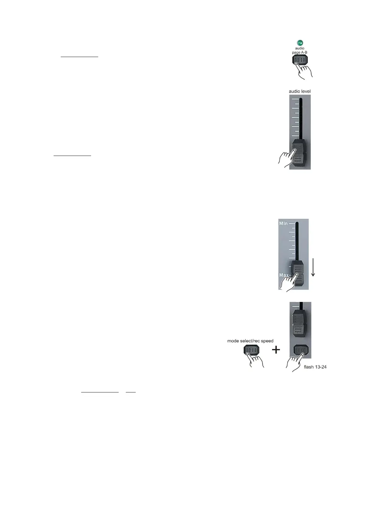 3. Adjust the sensitivity moving the audio level (19) fader.