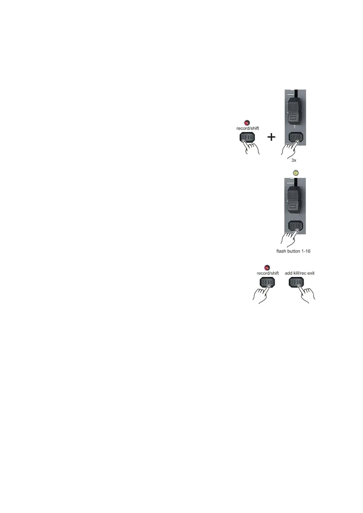 1. While holding down the record/shift (14) record button,