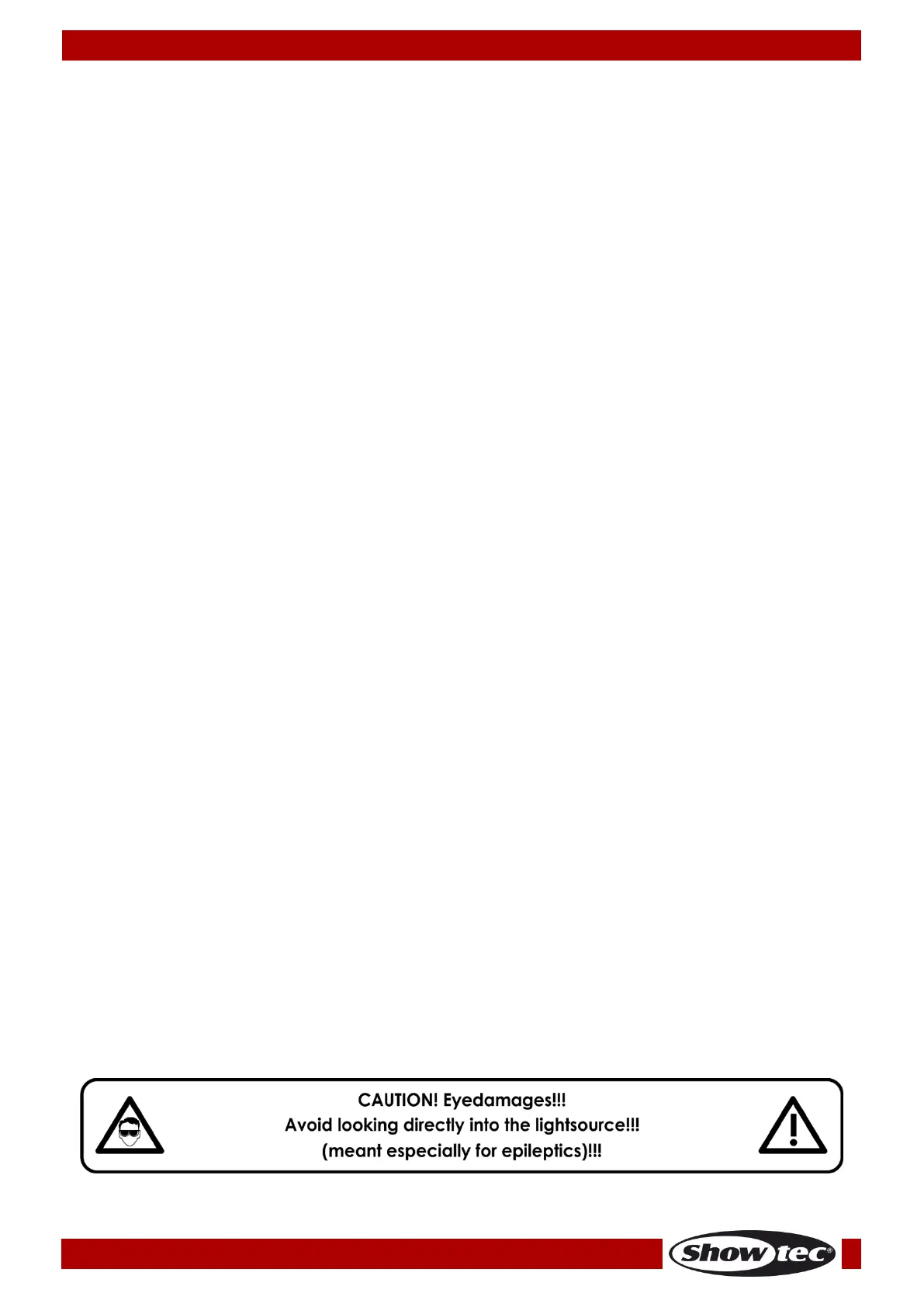 • If your Showtec device fails to work properly, discontinue the use immediately. Pack the unit securely