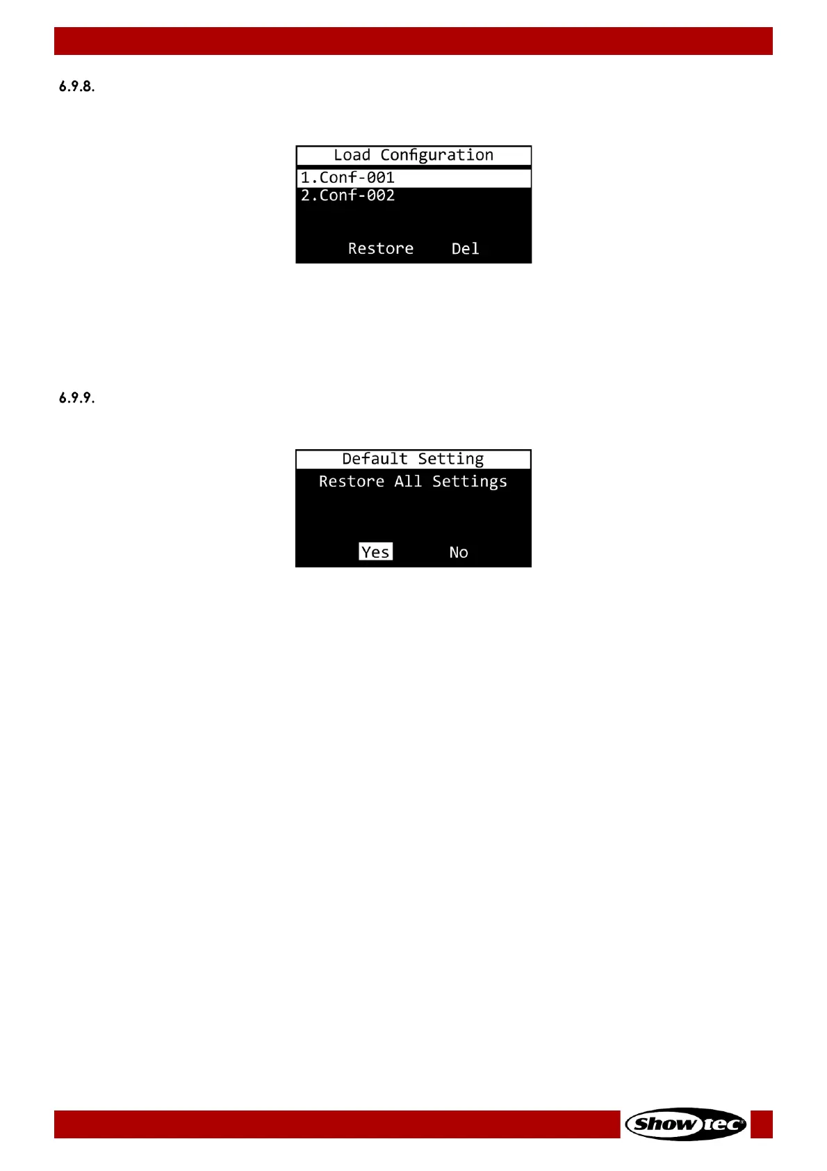 03) Press the UP/DOWN buttons to choose between RESTORE (load the desired configuration backup file)