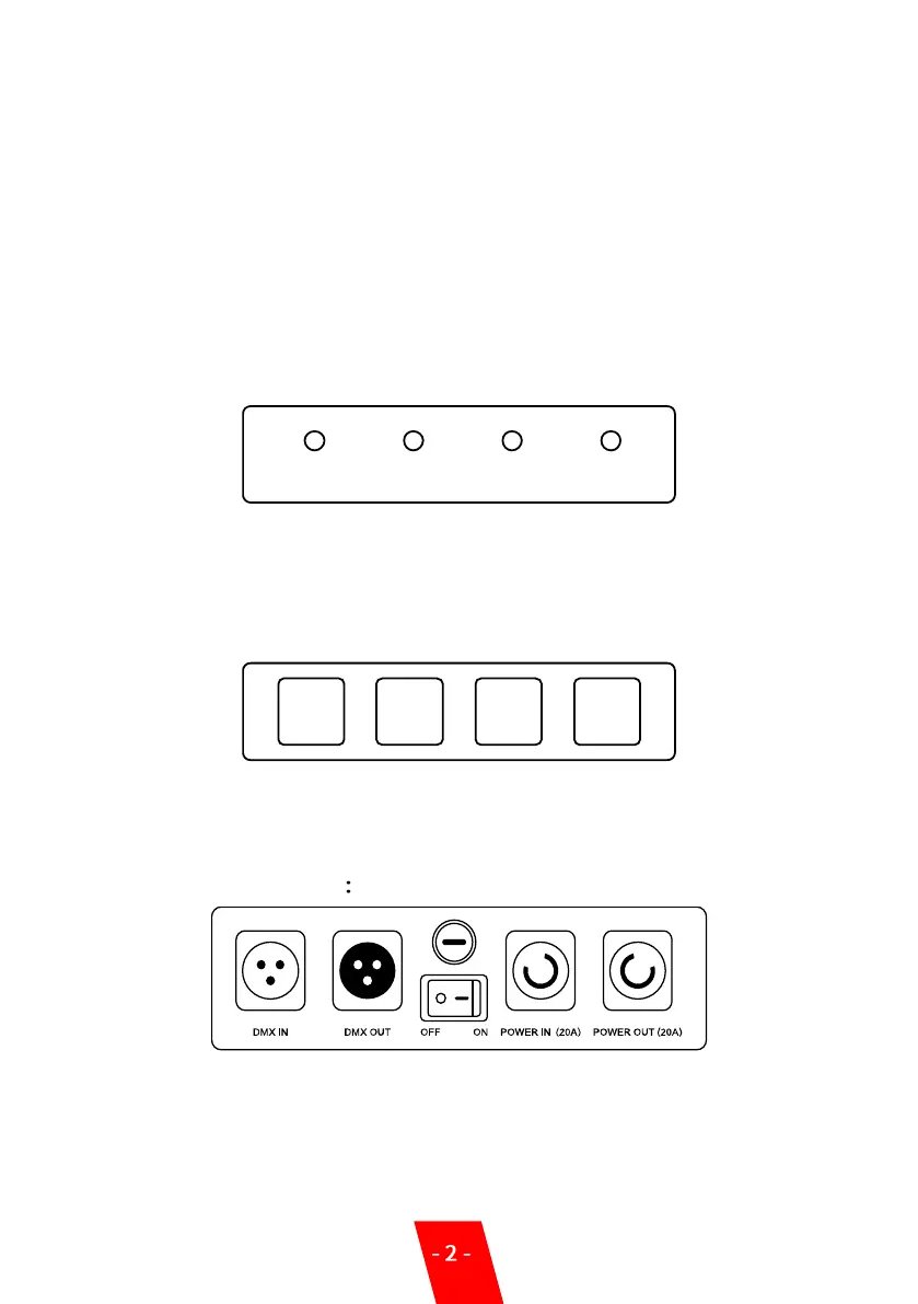 DMX: Flash means DMX signal is connected, light OFF means there is no DMX signal