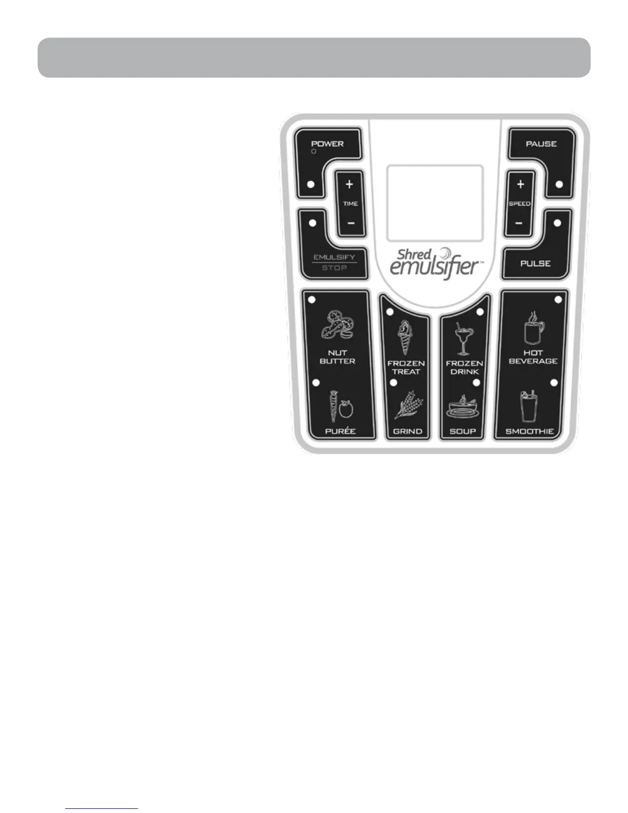 EMULSIFY Button: Automatically operates the unit at its lowest speed for a 10 minute default