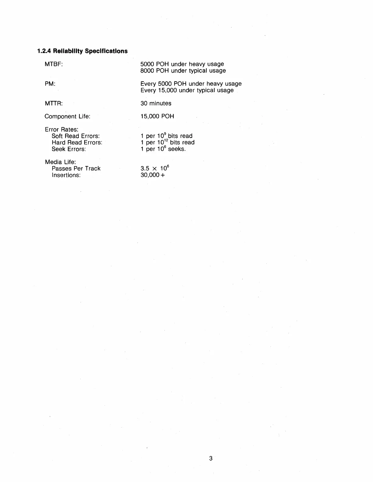 Shugart SA800 - Reliability Specifications; Key Reliability Metrics