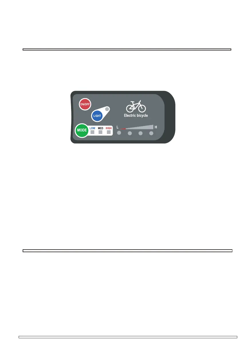 LIGHT button is used to turn the headlight on and off, and the battery level is displayed on the L – H