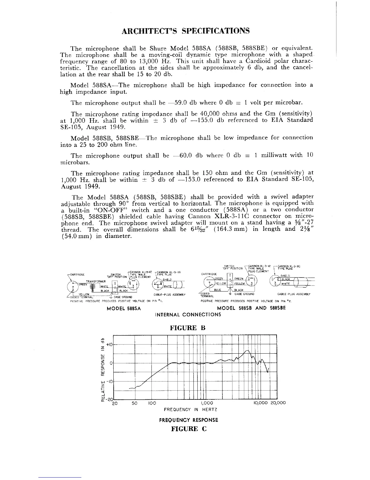 The microphone shall be Shure Model 588SA (588SB, 588SBE) or equivalent.