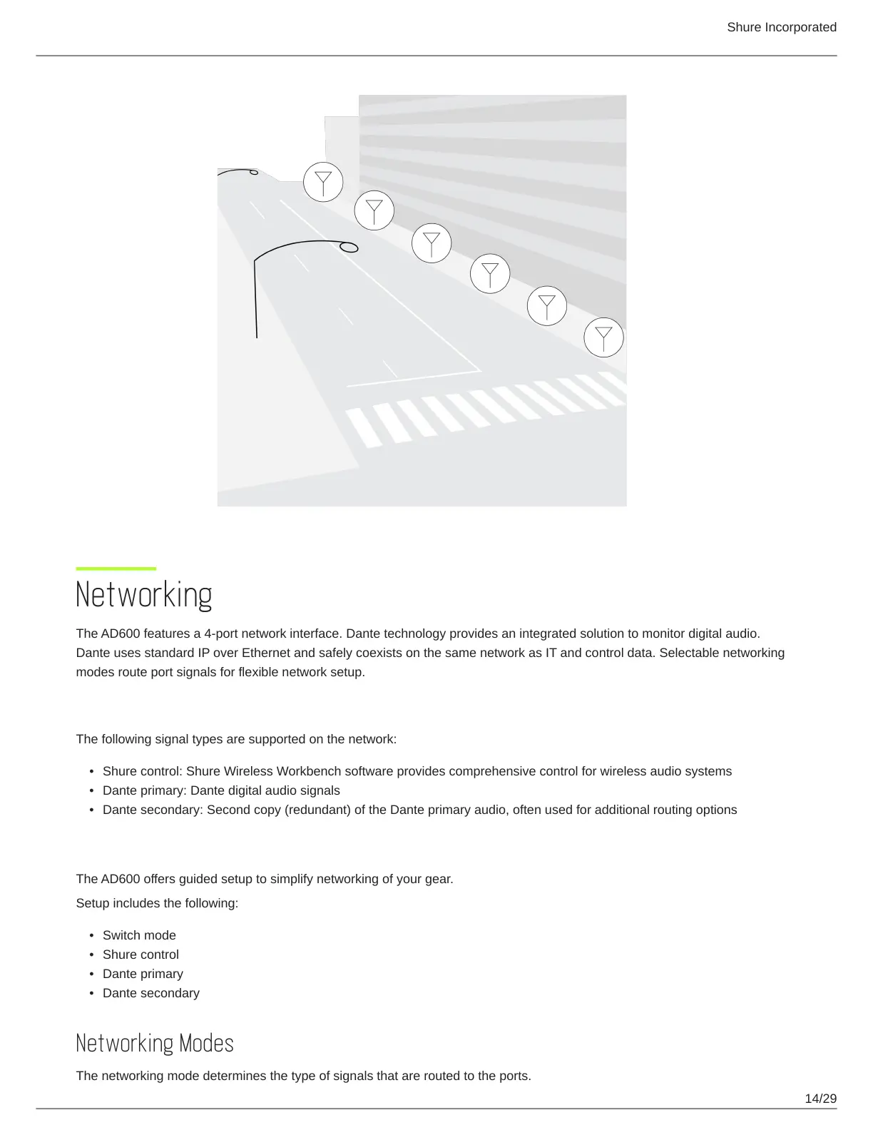 The AD600 features a 4-port network interface. Dante technology provides an integrated solution to monitor digital audio.