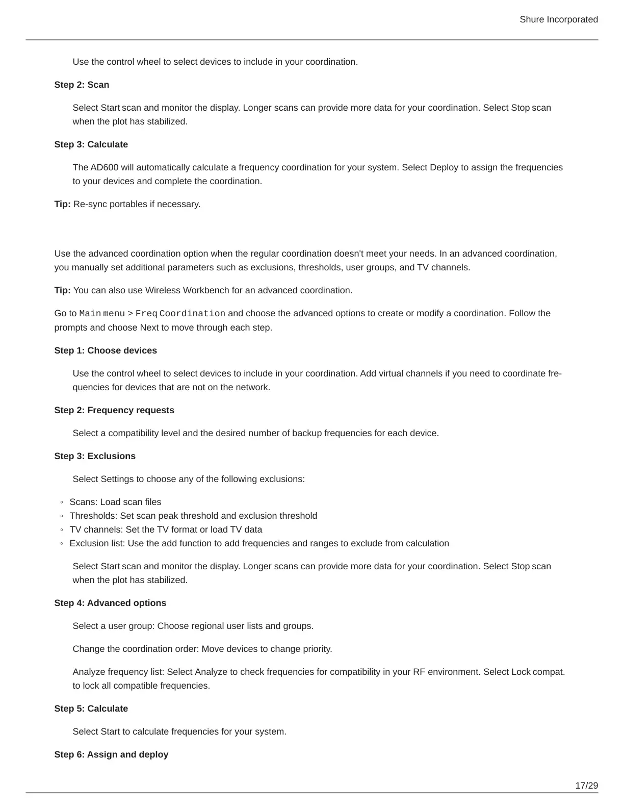 The AD600 will automatically calculate a frequency coordination for your system. Select Deploy to assign the frequencies