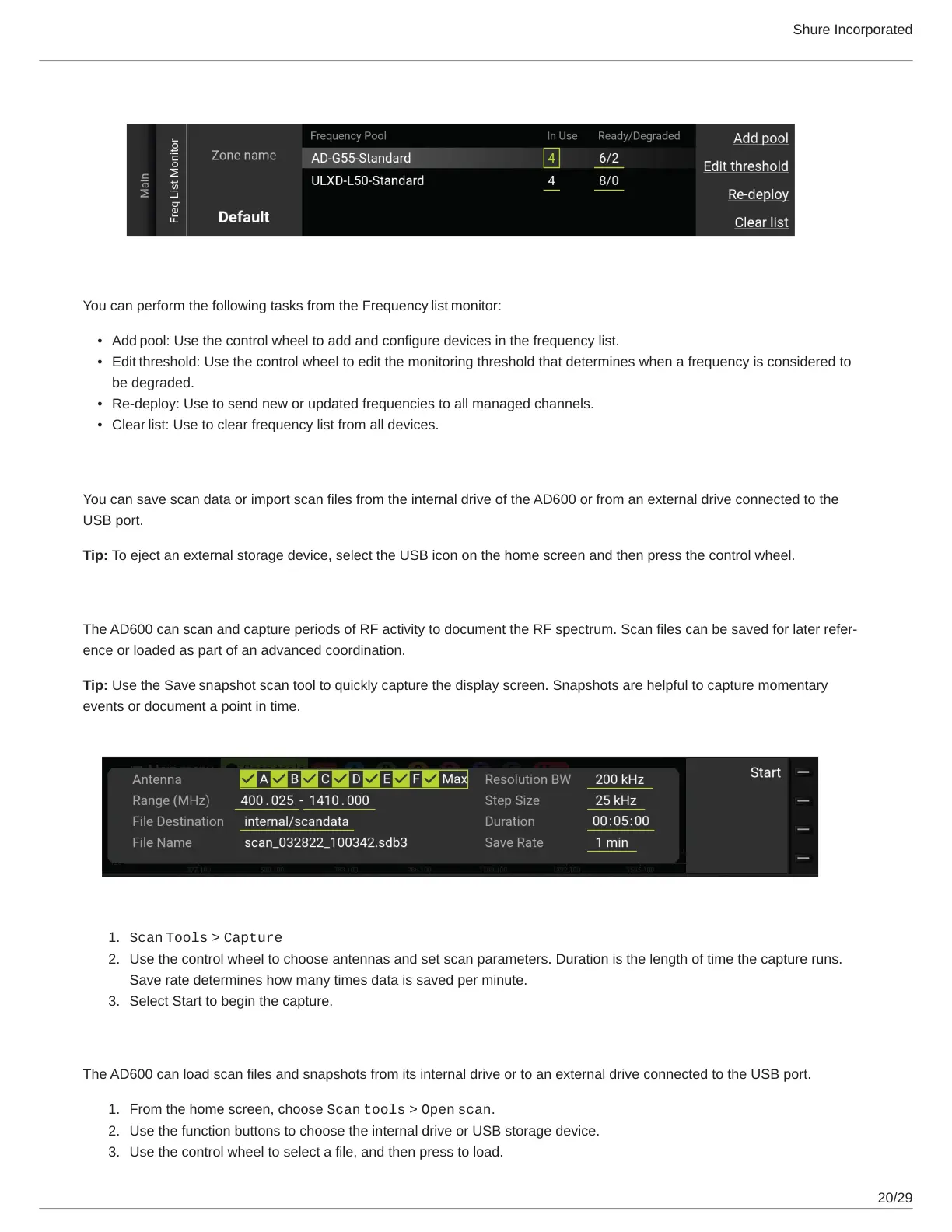 TheAD600canscanandcaptureperiodsofRFactivitytodocumenttheRFspectrum.Scanfilescanbesavedforlaterrefer