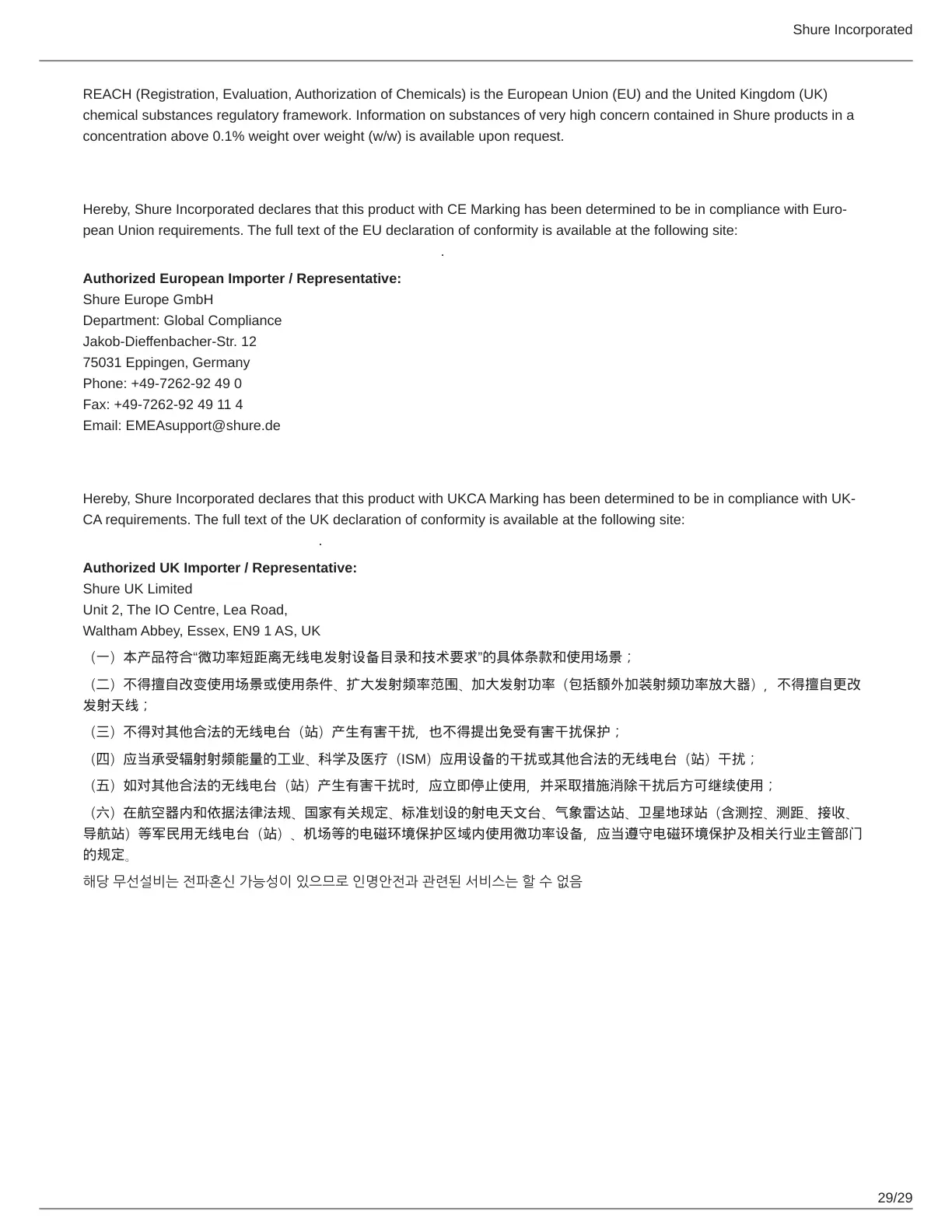 chemical substances regulatory framework. Information on substances of very high concern contained in Shure products in a