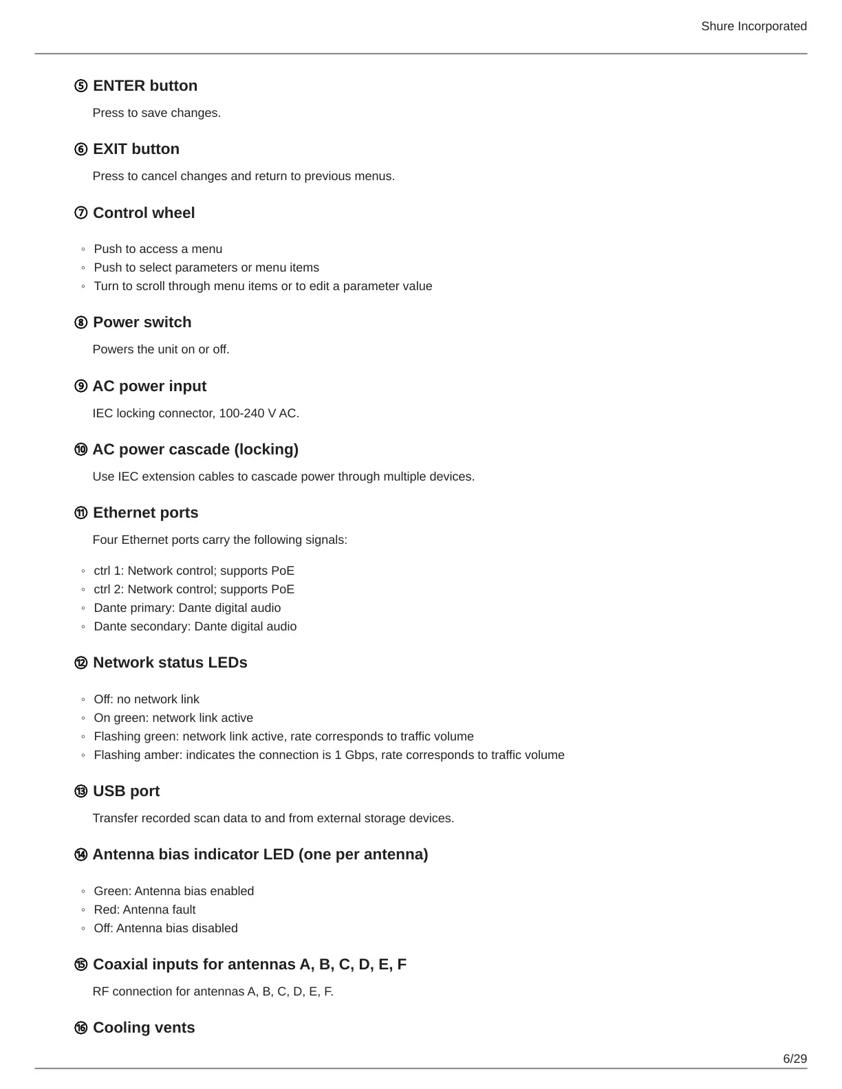⑭ Antenna bias indicator LED (one per antenna)