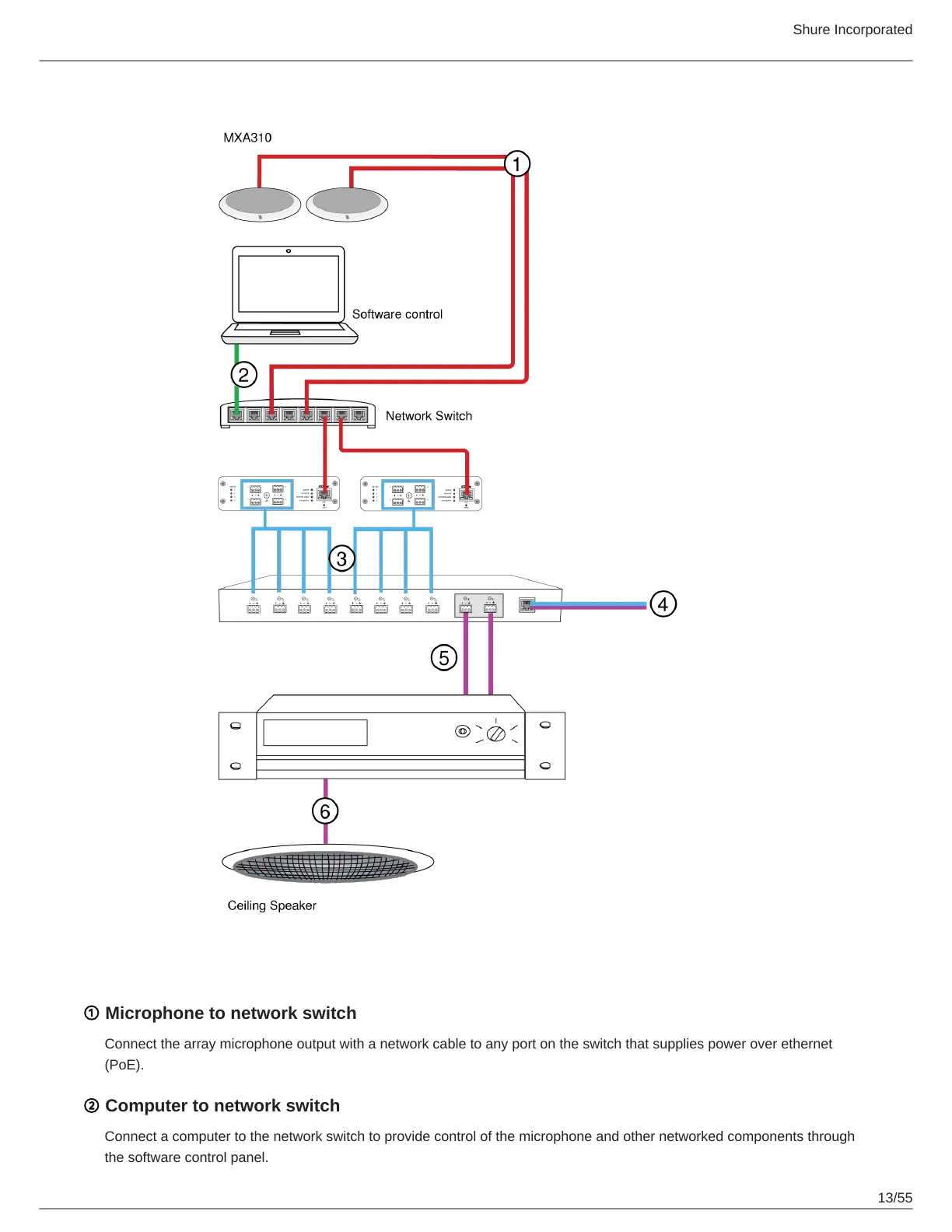 Connect a computer to the network switch to provide control of the microphone and other networked components through