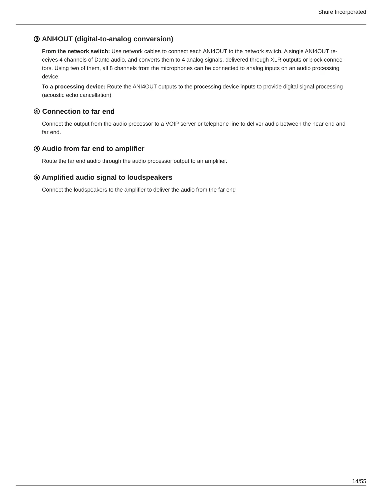 ceives 4 channels of Dante audio, and converts them to 4 analog signals, delivered through XLR outputs or block connec-