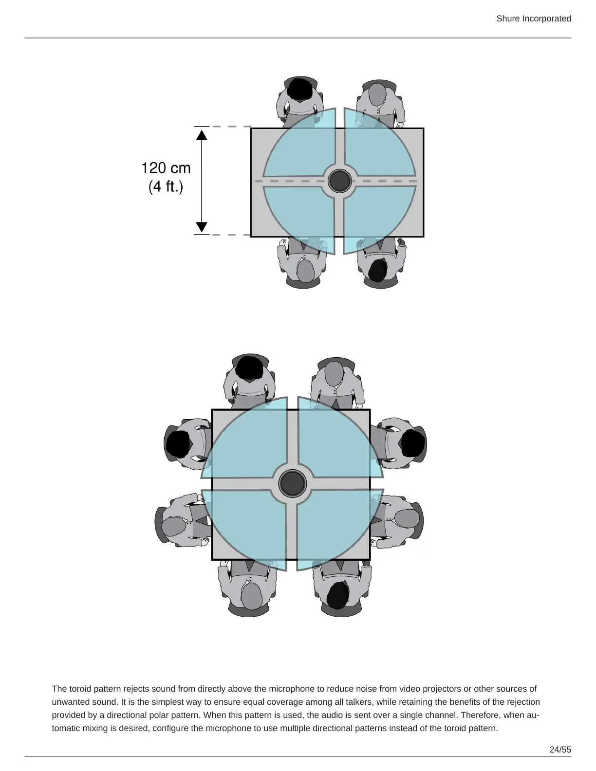The toroid pattern rejects sound from directly above the microphone to reduce noise from video projectors or other sources of