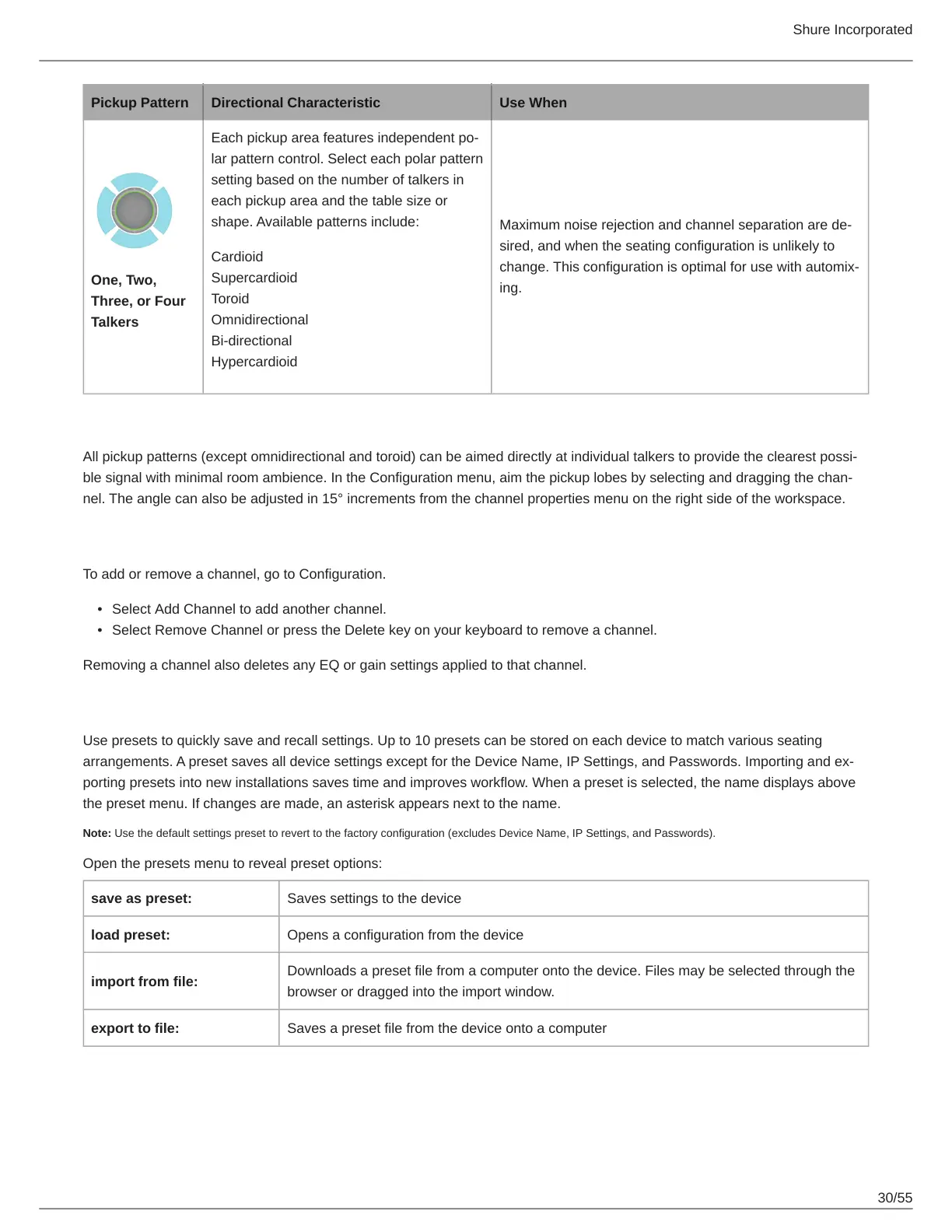 ble signal with minimal room ambience. In the Configuration menu, aim the pickup lobes by selecting and dragging the chan-