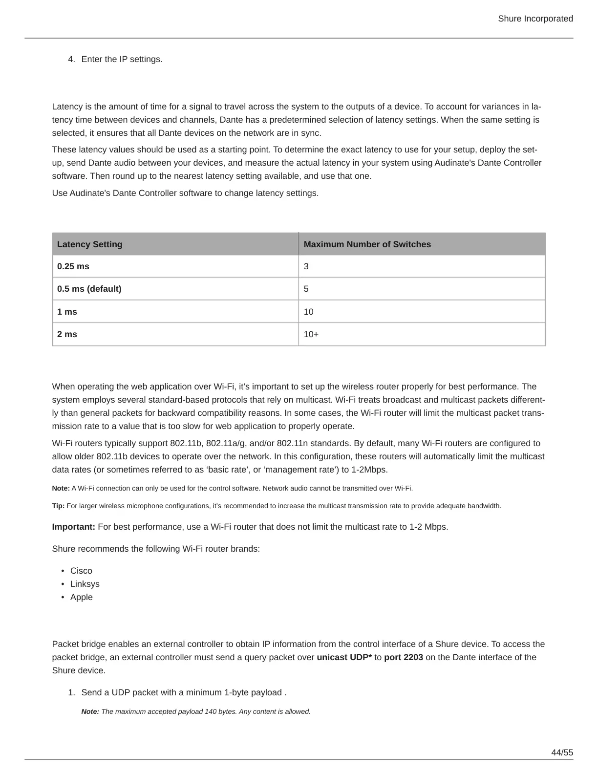 Shure recommends the following Wi-Fi router brands:
