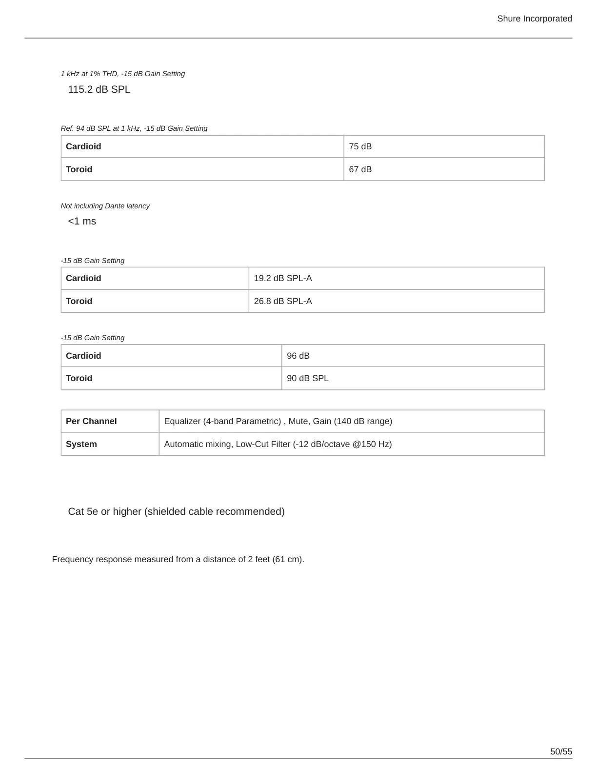 Ref. 94 dB SPL at 1 kHz, -15 dB Gain Setting