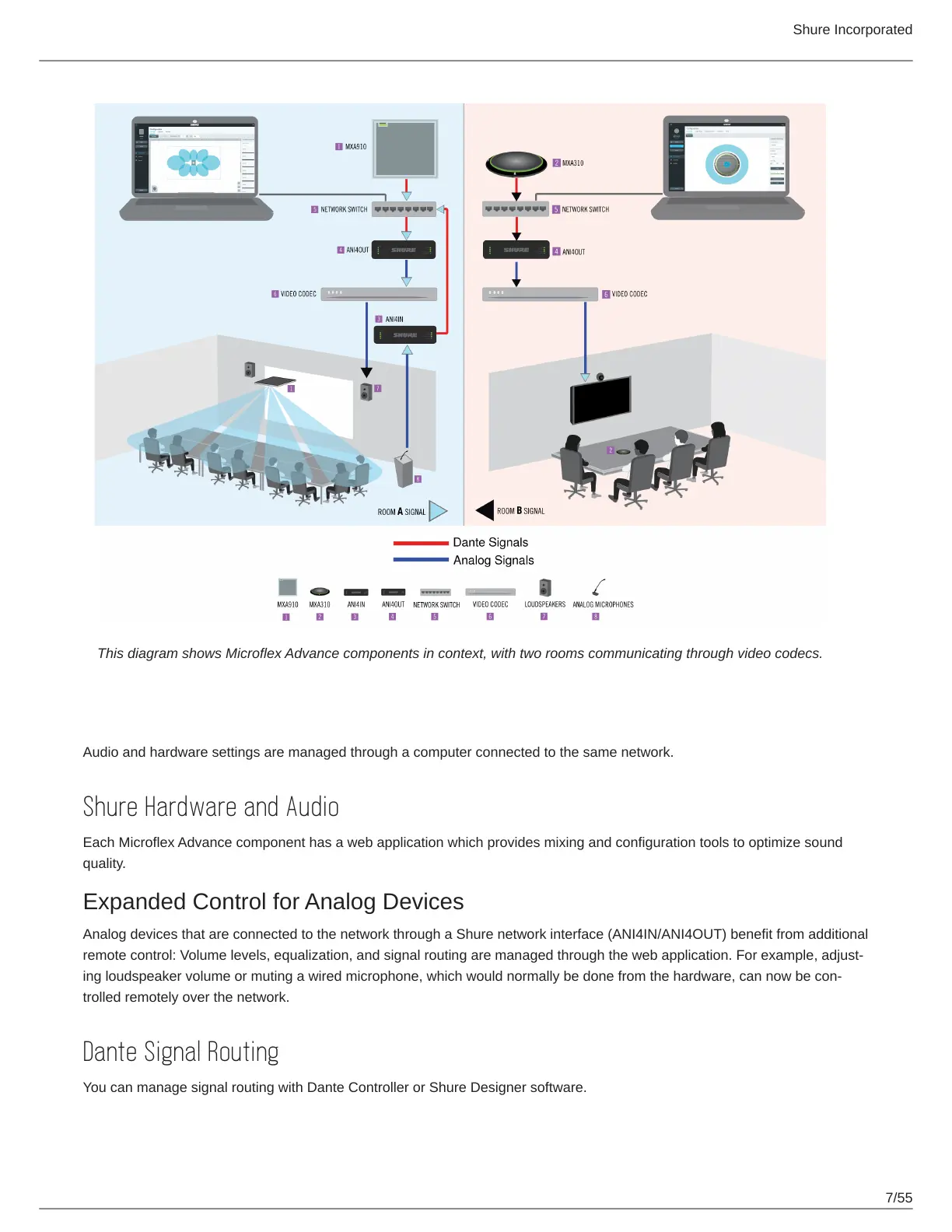 Analog devices that are connected to the network through a Shure network interface (ANI4IN/ANI4OUT) benefit from additional