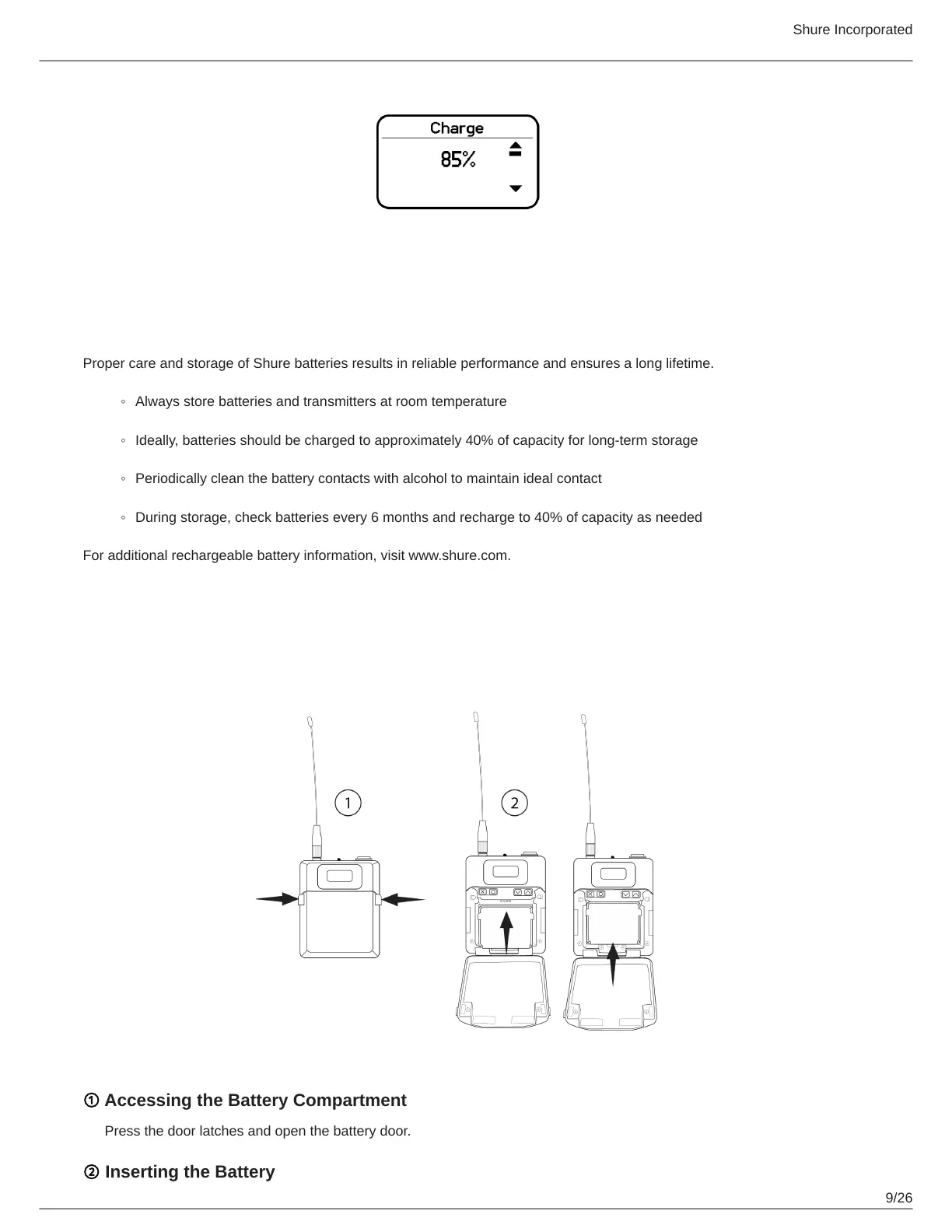 Proper care and storage of Shure batteries results in reliable performance and ensures a long lifetime.