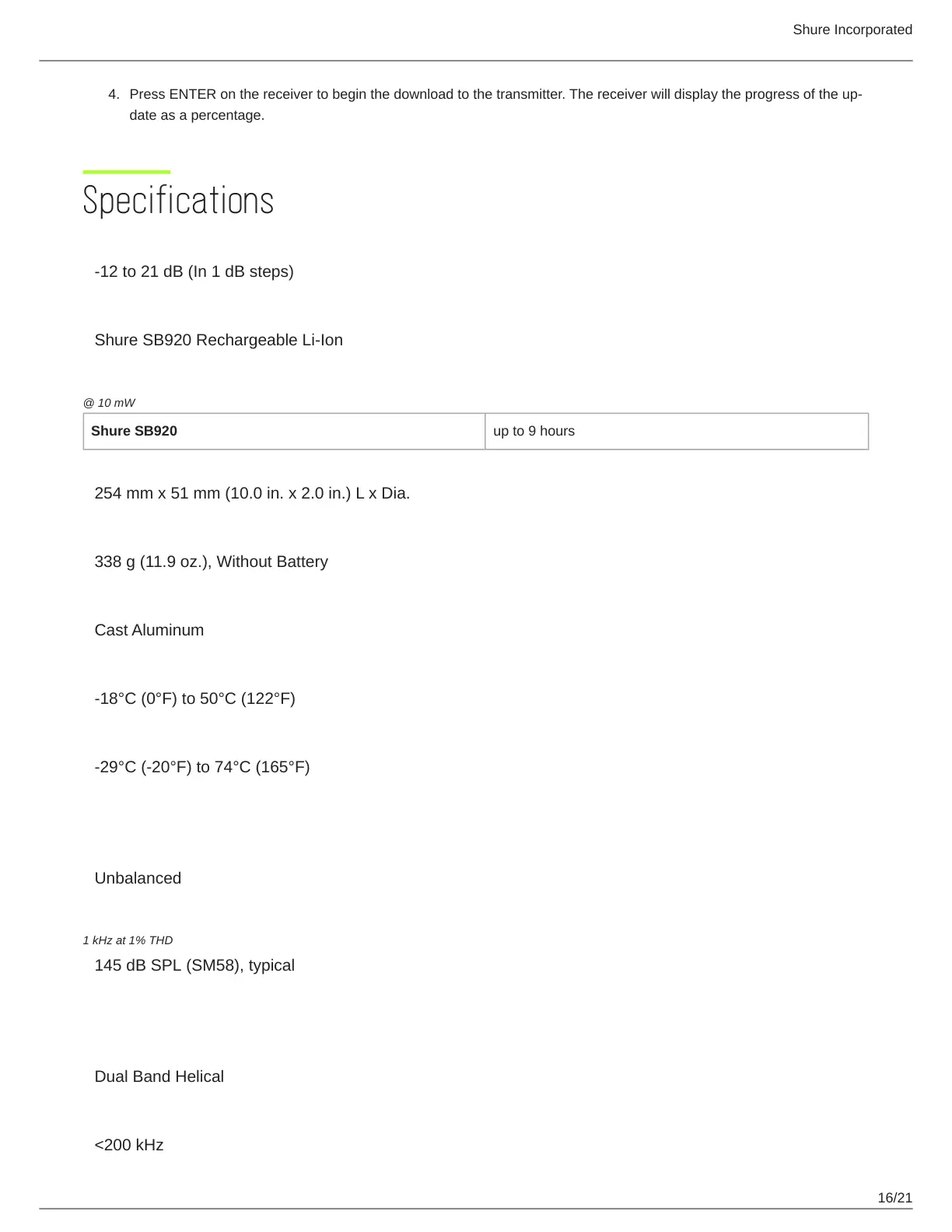 4. Press ENTER on the receiver to begin the download to the transmitter. The receiver will display the progress of the up