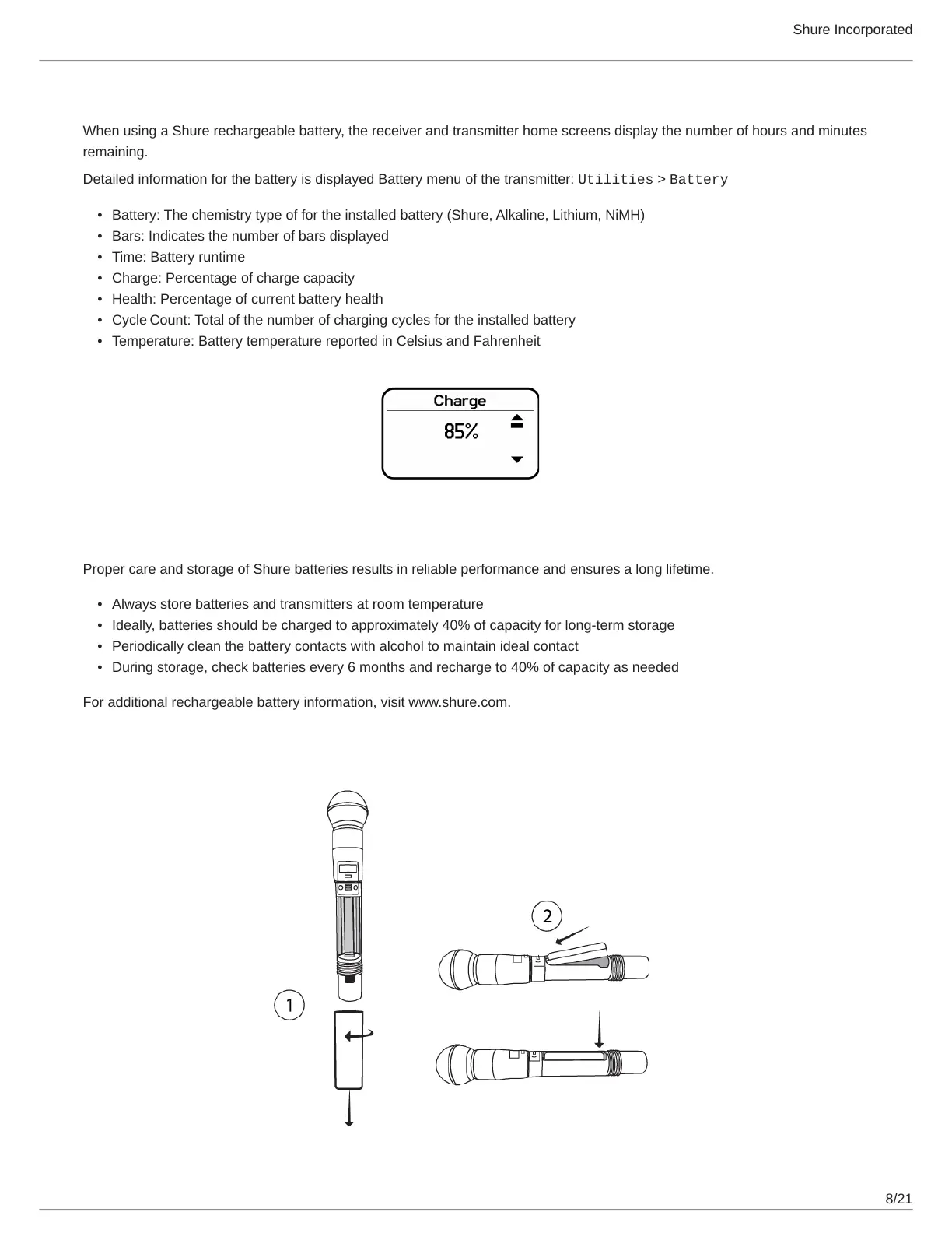 For additional rechargeable battery information, visit www.shure.com.