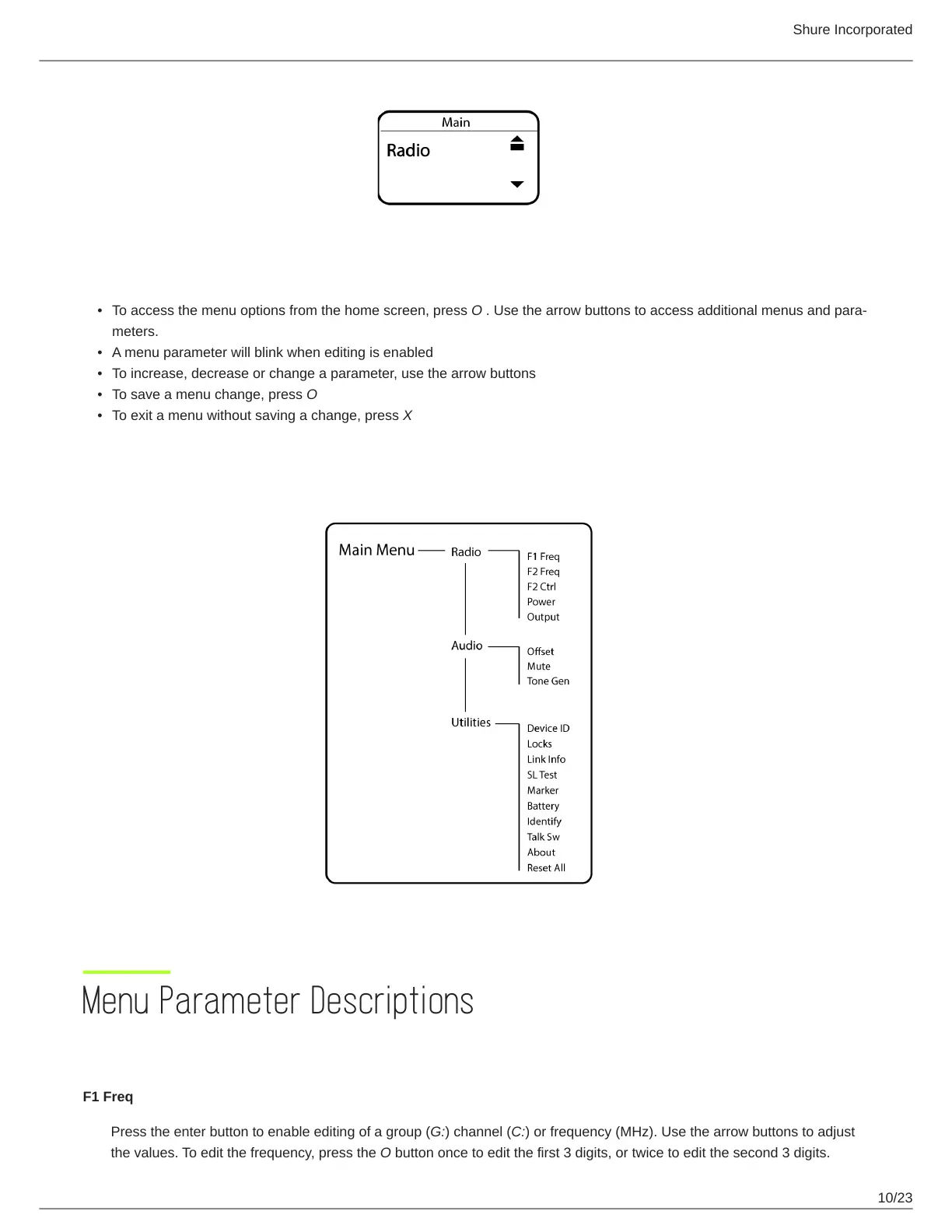the values. To edit the frequency, press the O button once to edit the first 3 digits, or twice to edit the second 3 digits.
