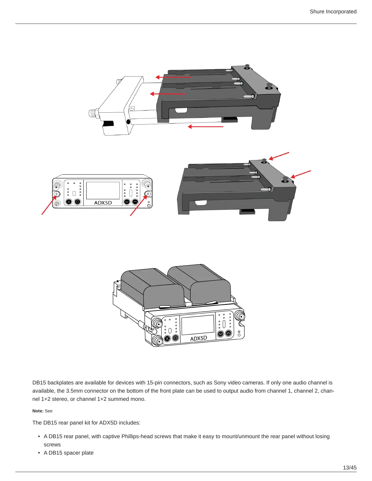 DB15 backplates are available for devices with 15-pin connectors, such as Sony video cameras. If only one audio channel is