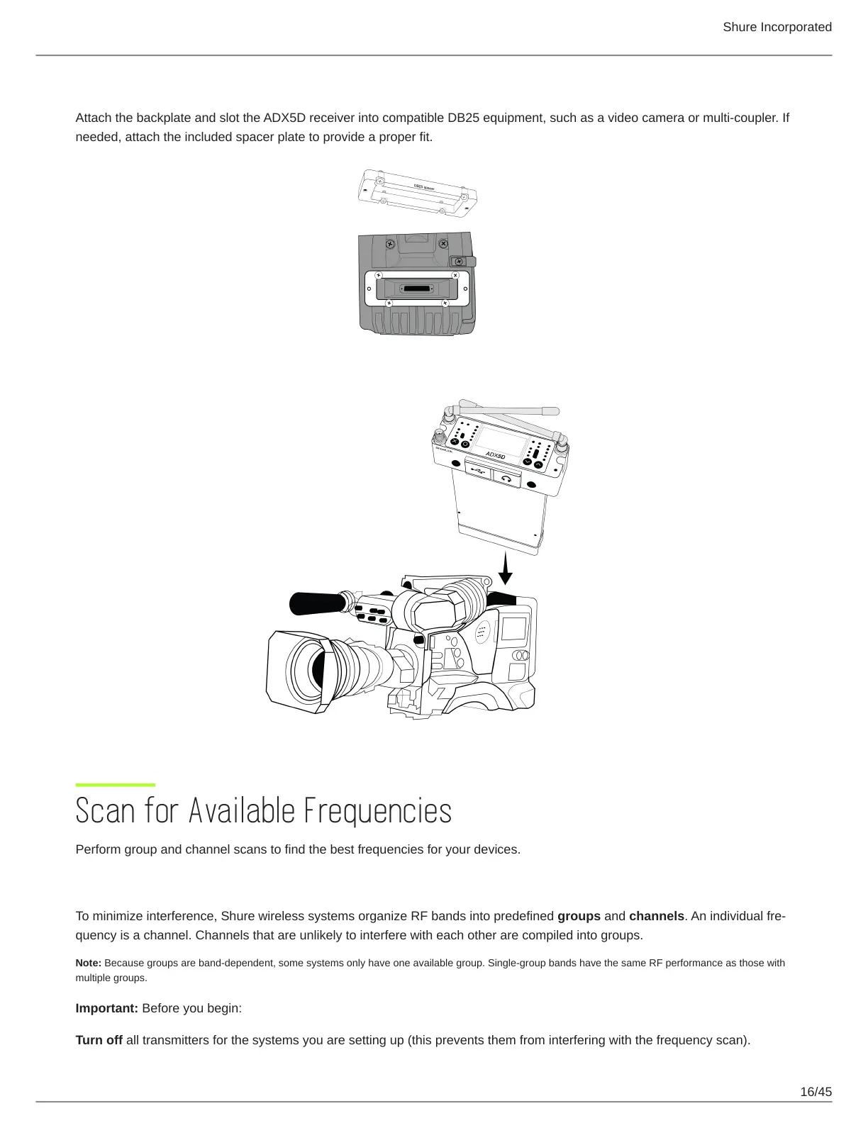 Attach the backplate and slot the ADX5D receiver into compatible DB25 equipment, such as a video camera or multi-coupler. If