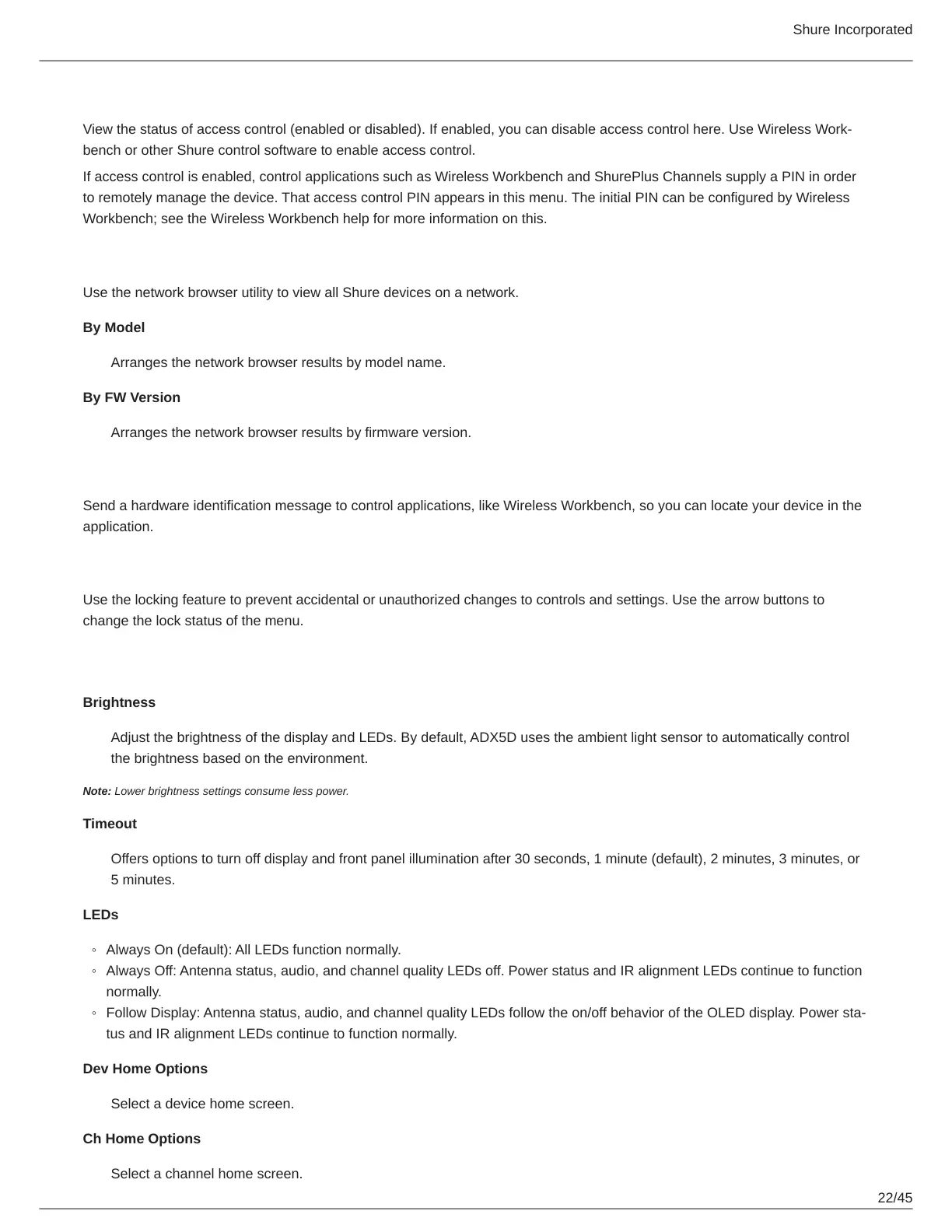 If access control is enabled, control applications such as Wireless Workbench and ShurePlus Channels supply a PIN in order