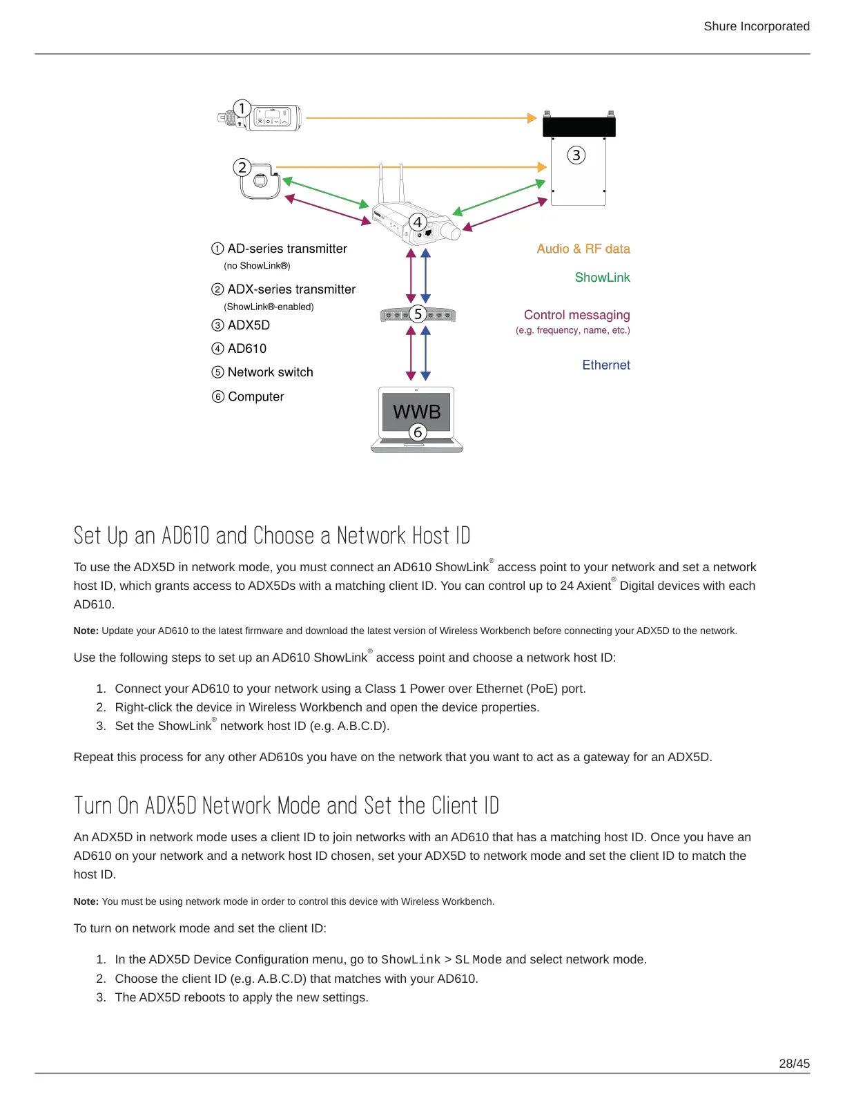 Note: Update your AD610 to the latest firmware and download the latest version of Wireless Workbench before connecting your ADX5D to the network.