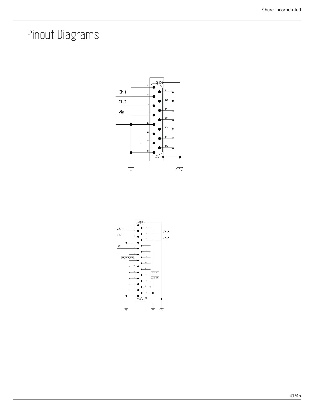 Shure ADX5D - Pinout Diagrams; DB15 Connector Pinout; DB25 Connector Pinout