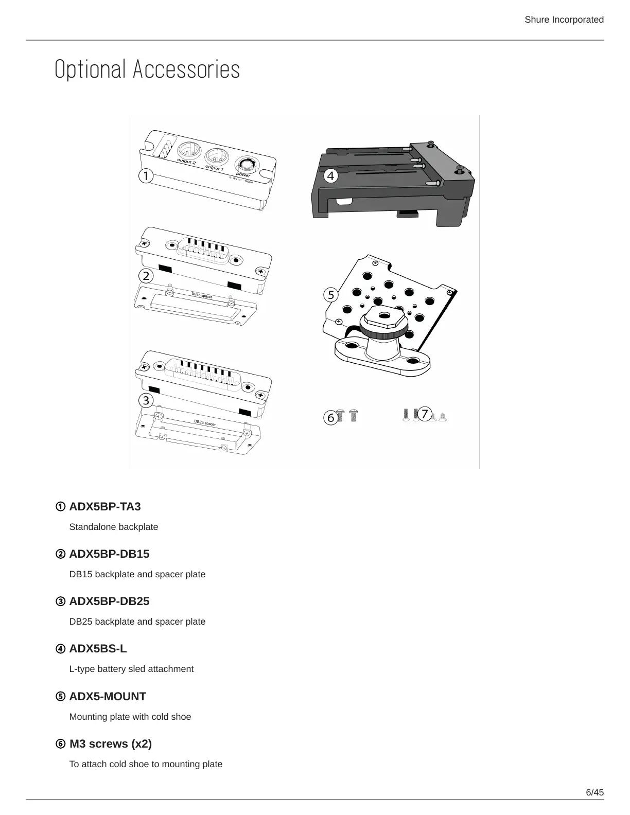 Shure ADX5D - Optional Accessories