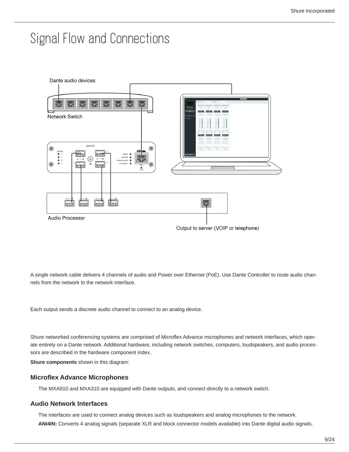 Shure networked conferencing systems are comprised of Microflex Advance microphones and network interfaces, which oper