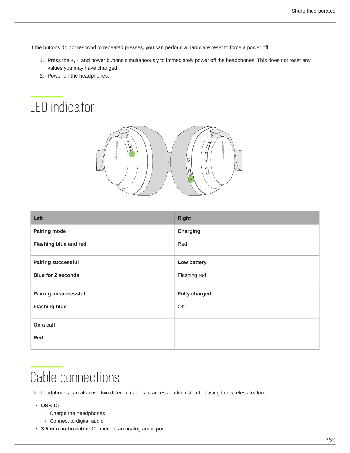 The headphones can also use two different cables to access audio instead of using the wireless feature:
