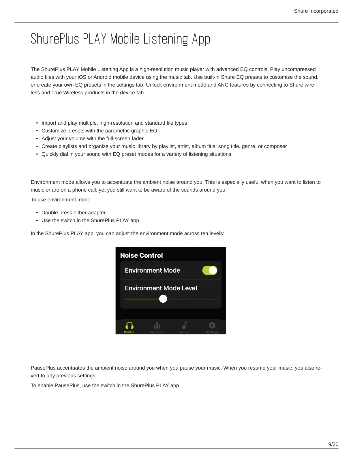 orcreateyourownEQpresetsinthesettingstab.UnlockenvironmentmodeandANCfeaturesbyconnectingtoShurewire